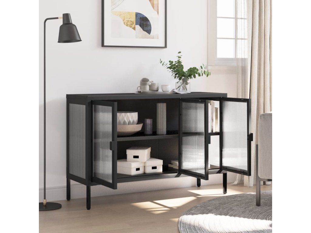 Multidom Komoda čierna 105x35x70 cm sklo a oceľ