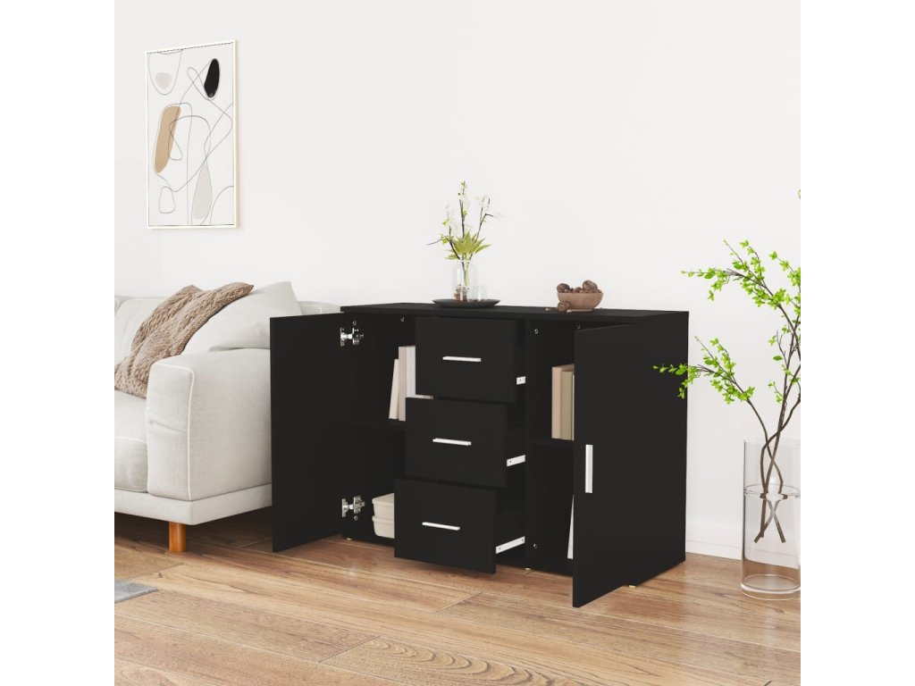 Multidom Komoda čierna 91x29,5x65 cm spracované drevo