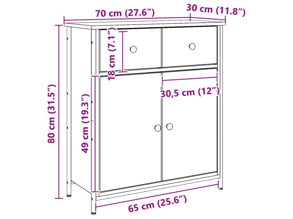 - Dostatok úložného priestoru: Táto bočná skrinka ponúka dostatok úložného priestoru na uloženie rôznych potrieb dobre organizovaných a na dosah ruky.