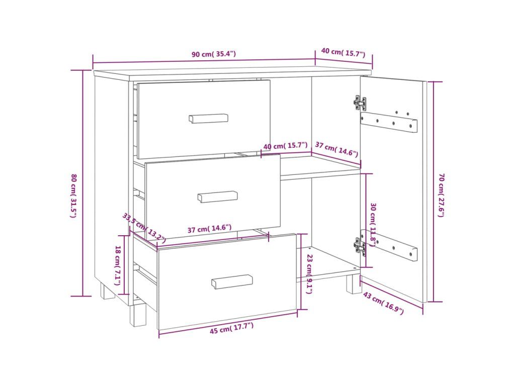 - Vnútorné rozmery zásuvky: 37 x 33,5 x 18 cm (Š x H x V)