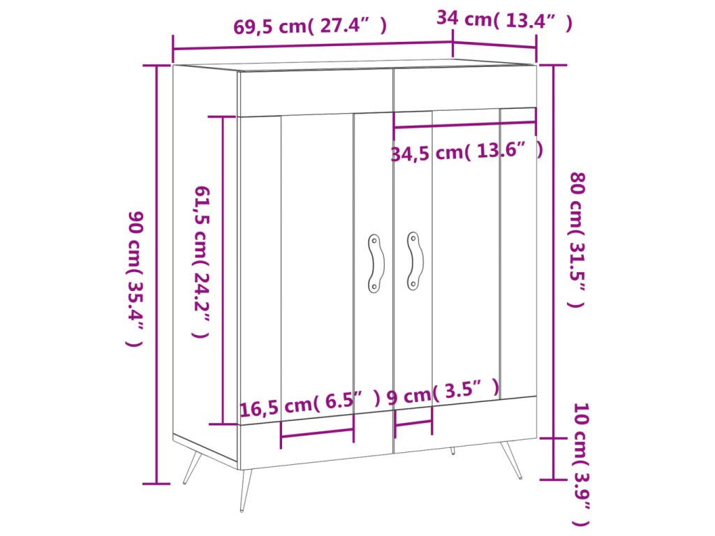 - Rozmery: 69,5 x 34 x 90 cm (Š x H x V)