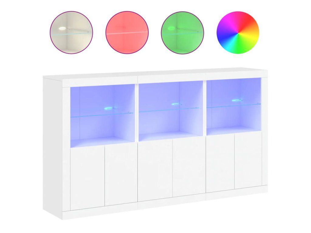 - RGB LED svetlá: Bufetová skrinka je vybavená žiarivými RGB LED svetlami. Vďaka rôznym nastaveniam môžete jednoducho zmeniť farbu svetiel a dokonca nastaviť aj ich automatické prispôsobenie. Tieto LED svetlá nielenže zvýrazňujú moderný vzhľad skrinky, ale prispievajú aj k jej módnemu vzhľadu.
