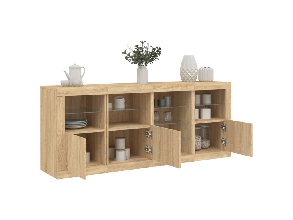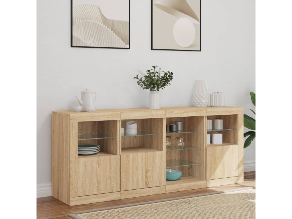 Ozdobte si izbu týmto moderným príborníkom s LED svetlami, ktorý sa skvele hodí k nábytku v akomkoľvek štýle vášho domu.
