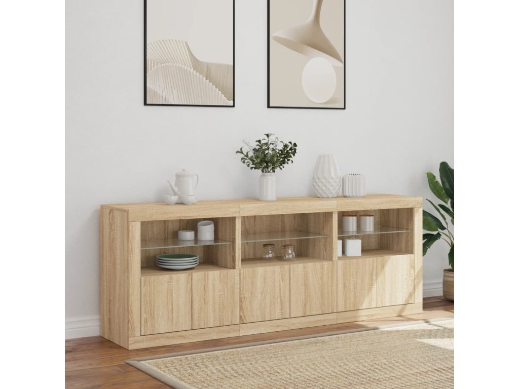 Ozdobte si izbu týmto moderným príborníkom s LED svetlami, ktorý sa skvele hodí k nábytku v akomkoľvek štýle vášho domu.
