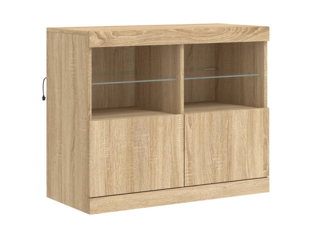 - RGB LED svetlá: Bufetová skrinka je vybavená žiarivými RGB LED svetlami. Vďaka rôznym nastaveniam môžete jednoducho zmeniť farbu svetiel a dokonca nastaviť aj ich automatické prispôsobenie. Tieto LED svetlá nielenže zvýrazňujú moderný vzhľad skrinky, ale prispievajú aj k jej módnemu vzhľadu.