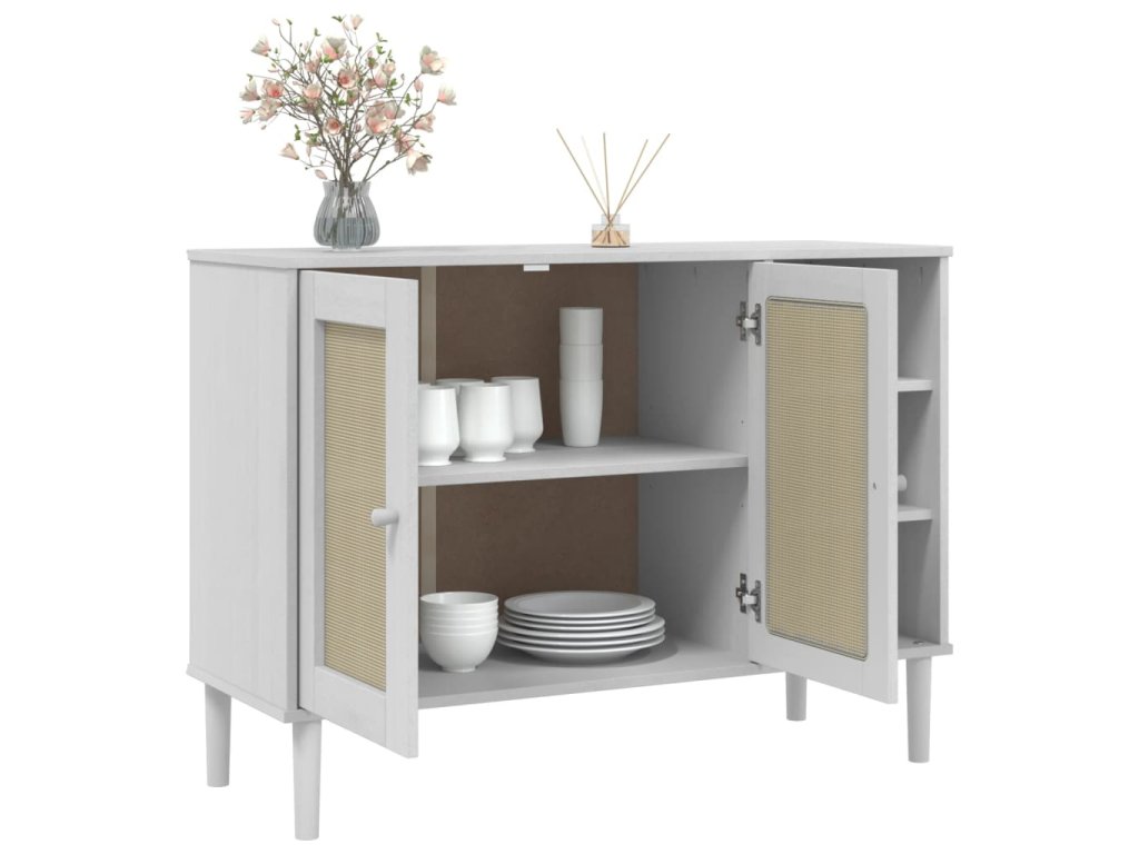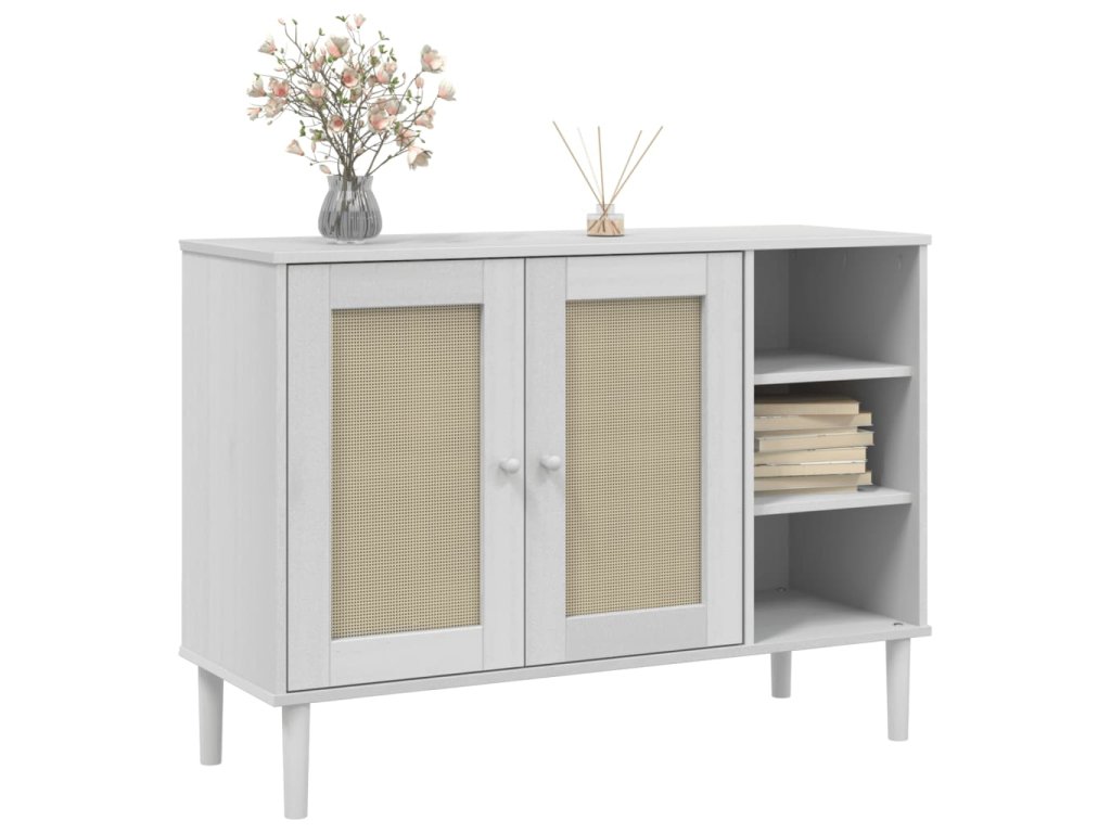 Multidom Komoda SENJA, ratanová biela 112x40x80 cm, borovicový masív