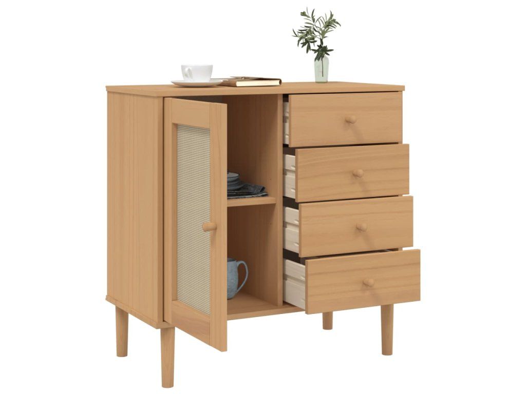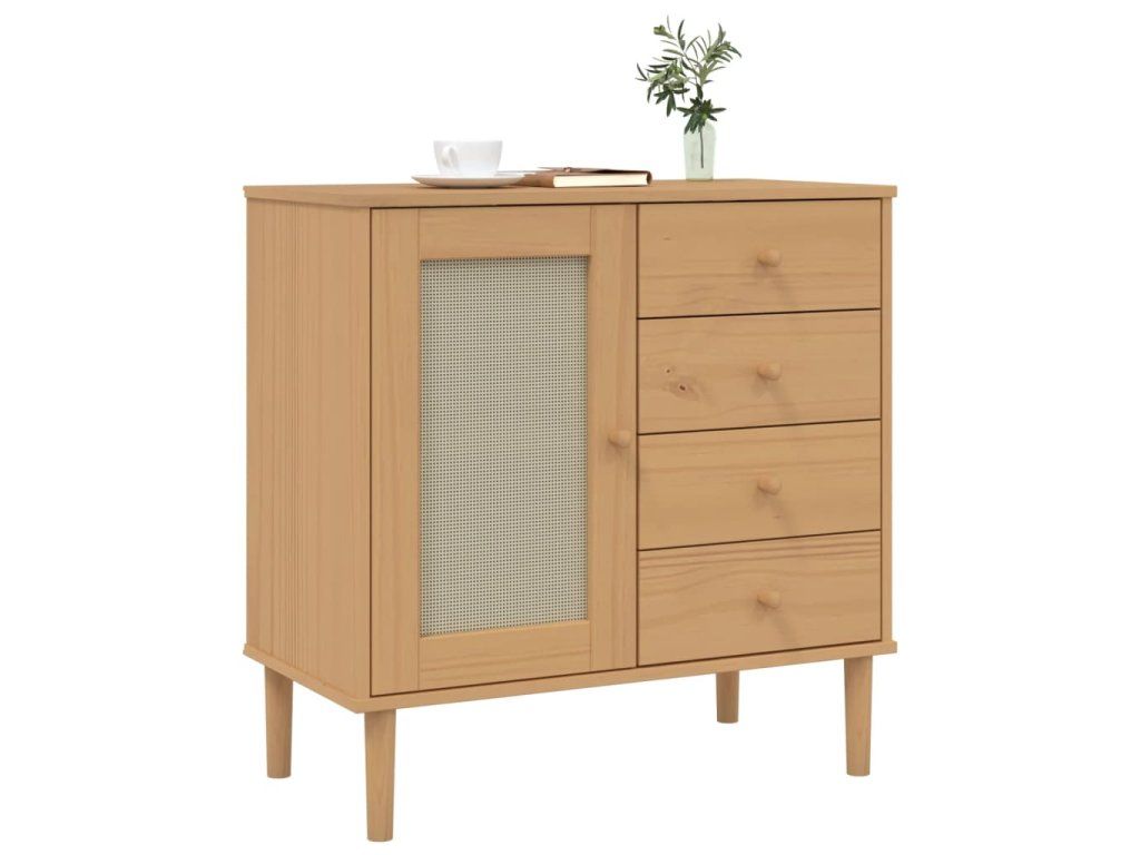 Multidom Komoda SENJA, ratanová hnedá 80x40x80 cm, borovicový masív