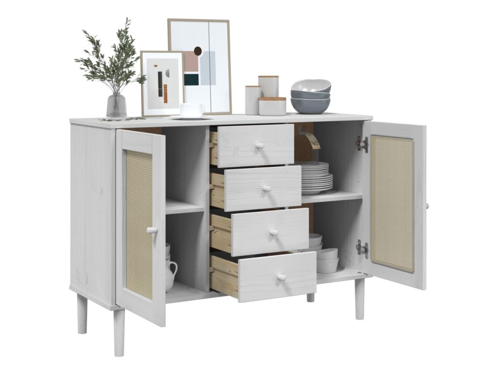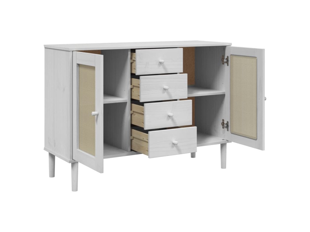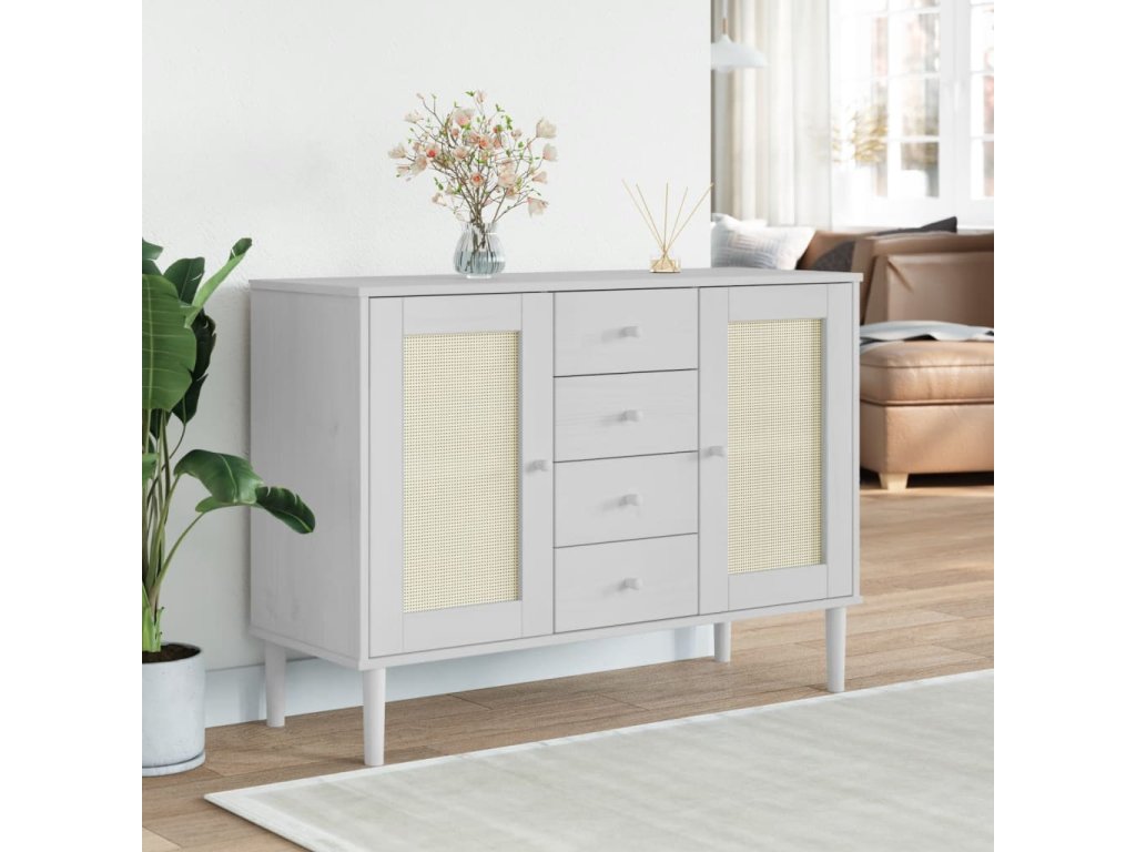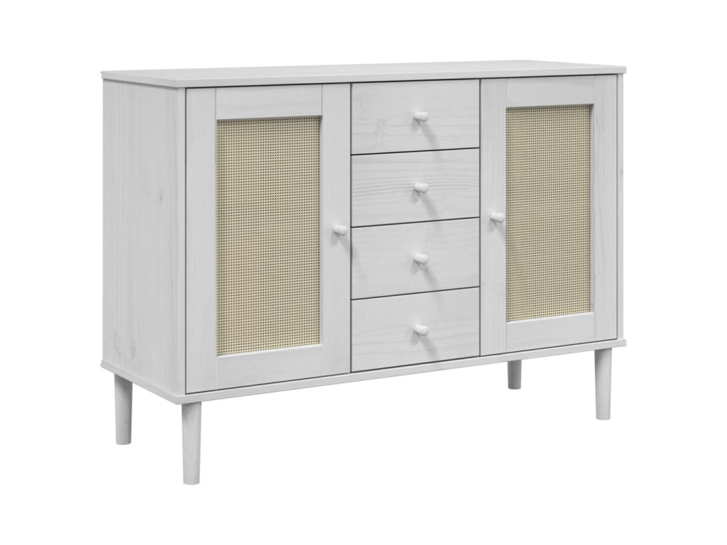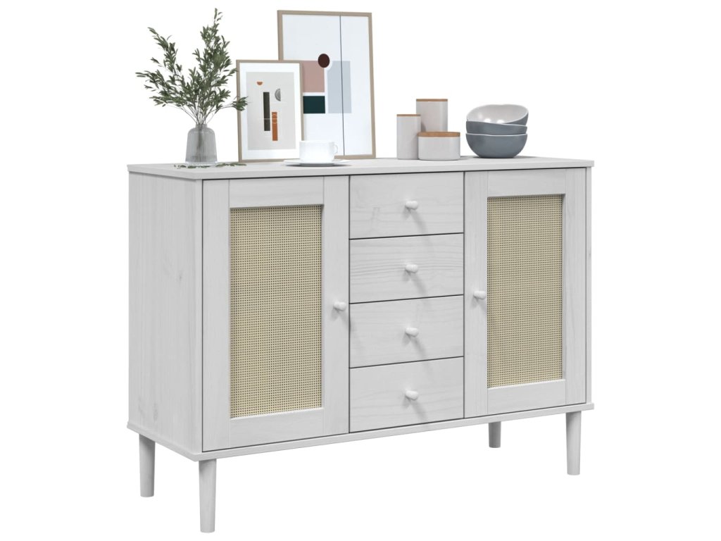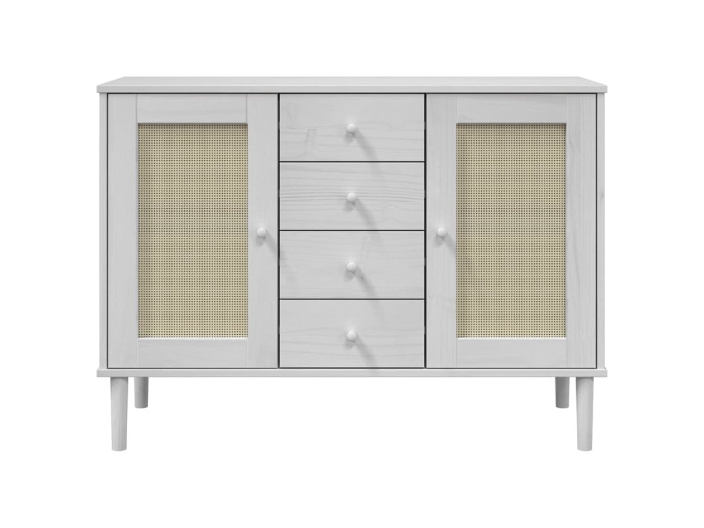 Multidom Komoda SENJA, ratanový vzhľad, biela 112x40x80 cm, borovica