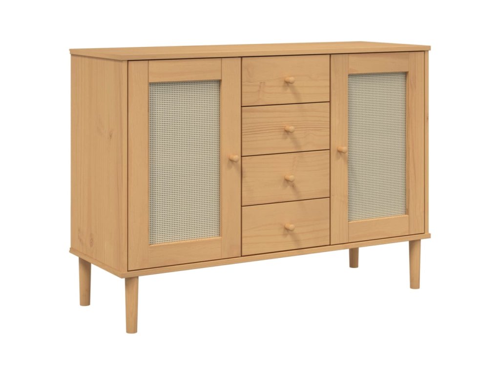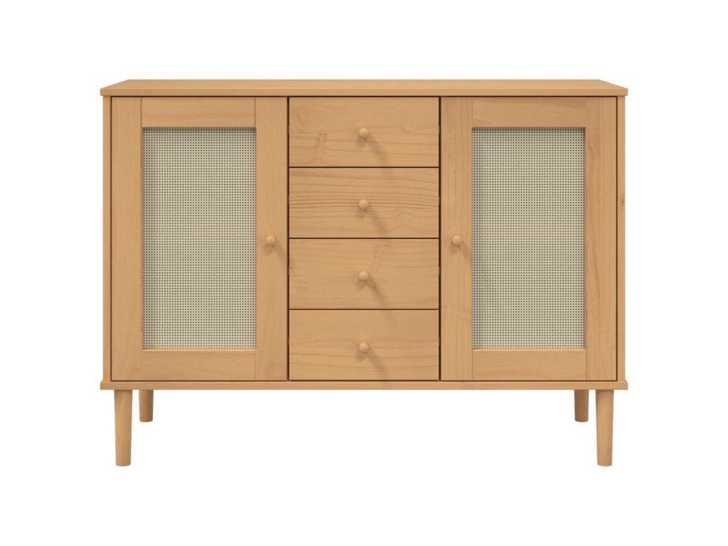Multidom Komoda SENJA, ratanový vzhľad, hnedá 112x40x80 cm, borovica