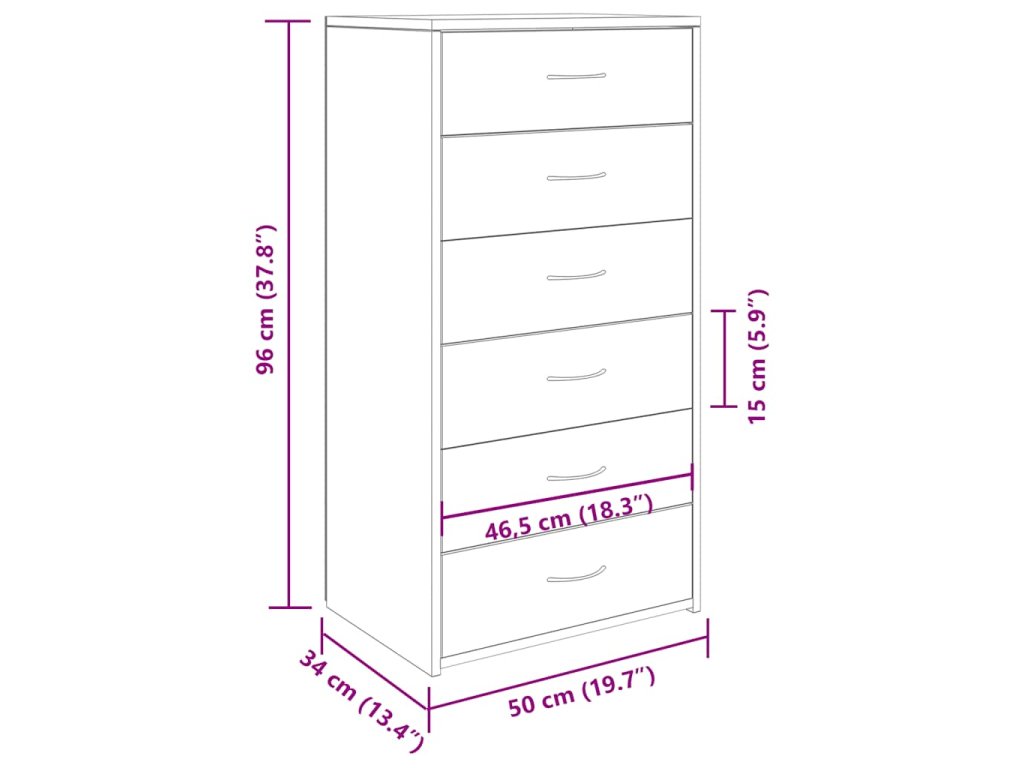 Multidom Komoda so 6 zásuvkami, staré drevo 50x34x96cm, kompozitné drevo