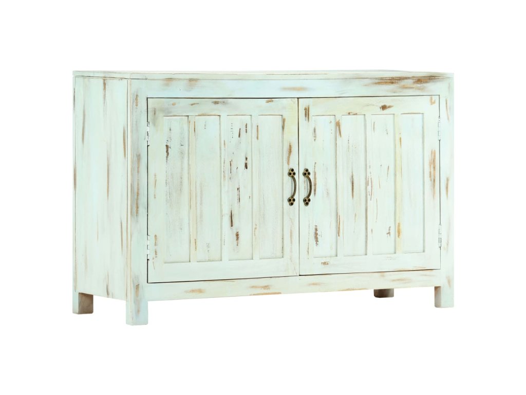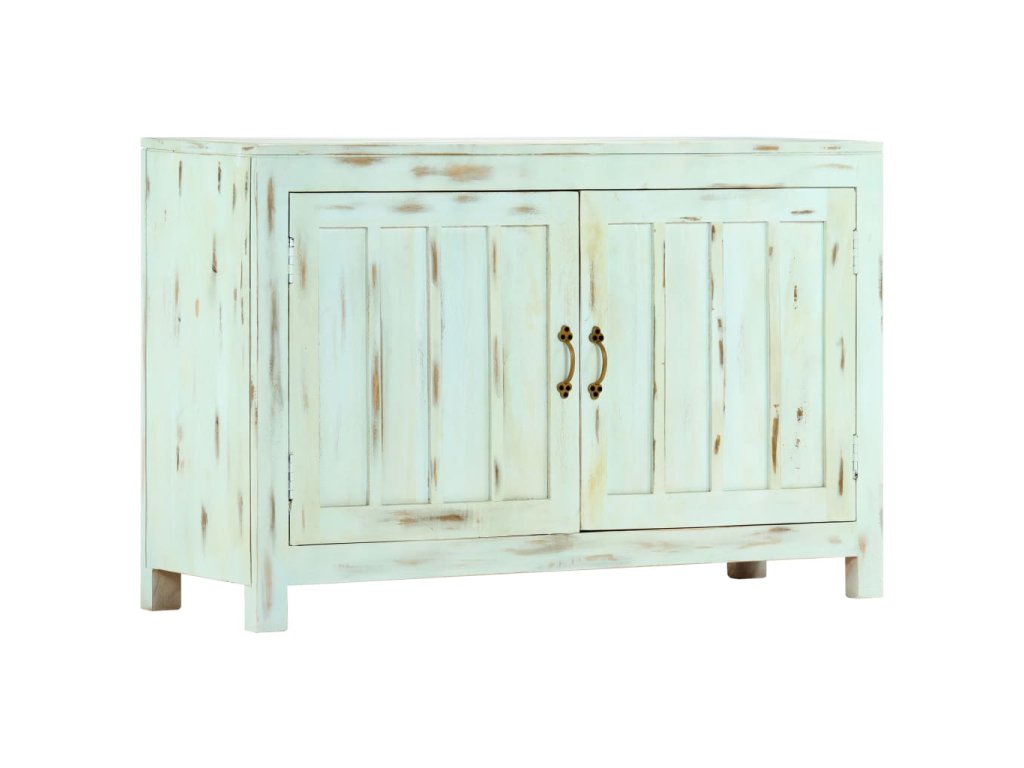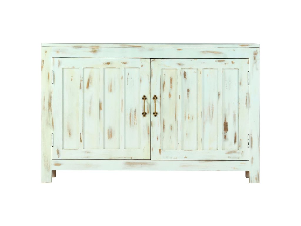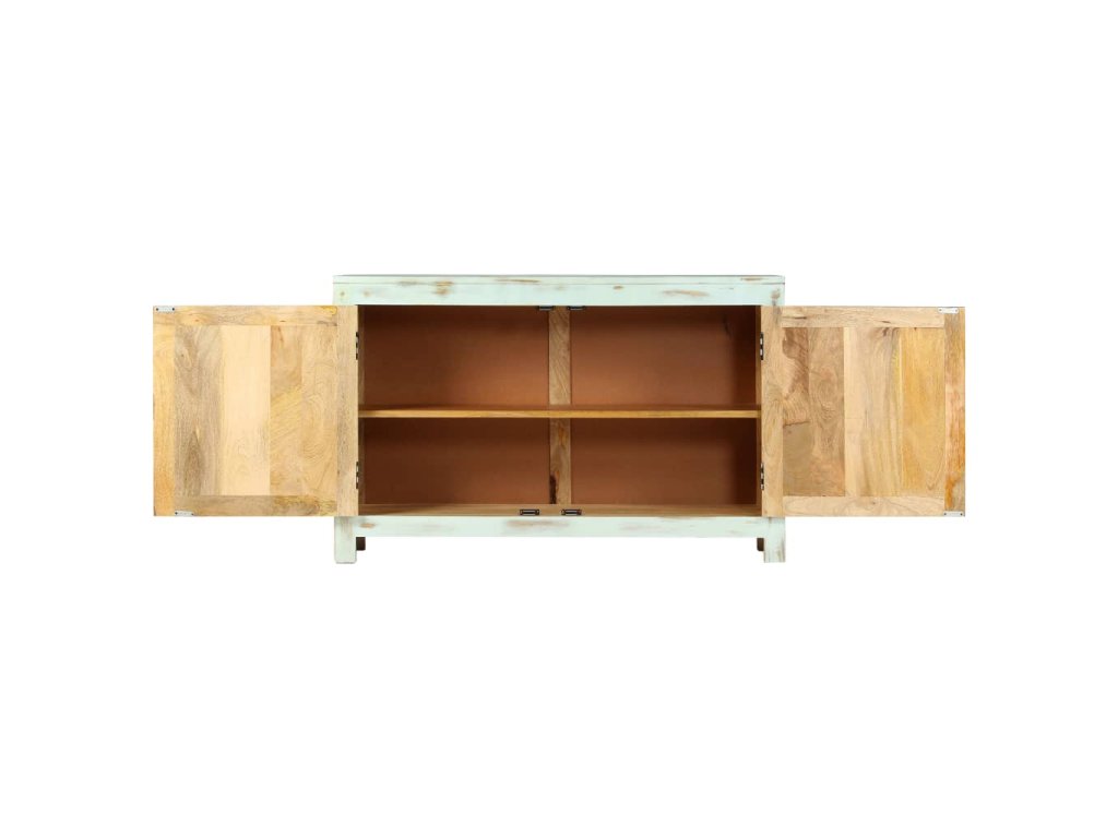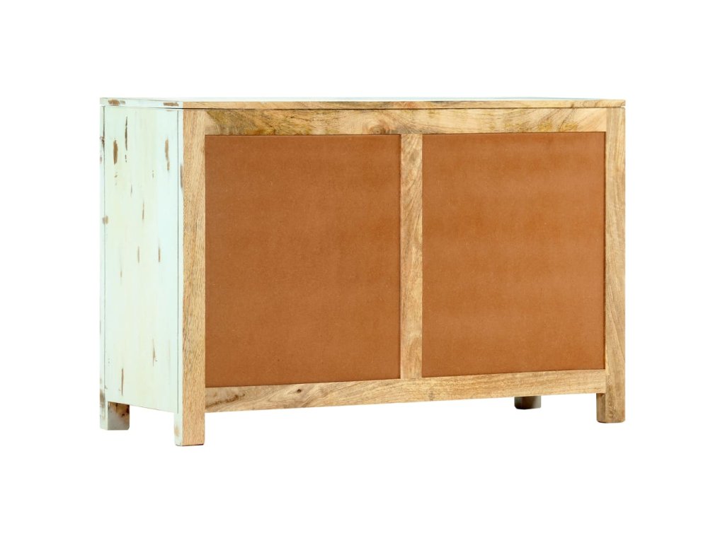 Táto komoda je ručne vyrobená z masívneho mangovníkového dreva, ktoré je pevné, stabilné, odolné a krásne. Remeselné prevedenie jej dodáva úžasný retro štýl. Každý krok výrobného procesu je robený s tou najväčšou starostlivosťou, či už sa jedná o leštenie, lakovanie alebo natieranie. Vďaka remeselnému prevedeniu a nádhernej štruktúre dreva je každý kus tohoto nábytku jedinečný a trochu odlišný od ostatných kusov. Komoda má skrinku s dvoma dvierkami a poskytuje veľký úložný priestor pre denné potreby.