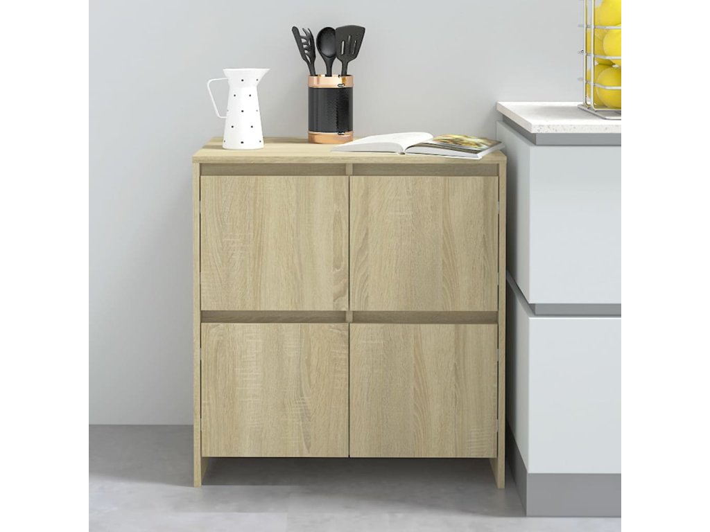 Komoda so 4 dvierkami poskytne dostatok úložného priestoru pre knihy, multimediálne zariadenia a ďalšie predmety. Robustná stolová doska je ideálna na vystavenie dekoratívnych predmetov, zarámovaných fotografií alebo rastlín v kvetináčoch. Táto skrinka sa navyše ľahko čistí vlhkou handričkou.