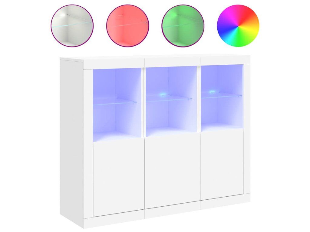 Multidom Komody s LED svetlami 3 ks biele kompozitné drevo
