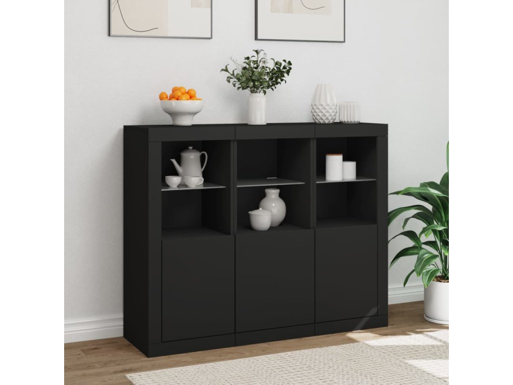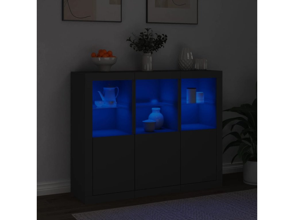 Multidom Komody s LED svetlami 3 ks čierne kompozitné drevo