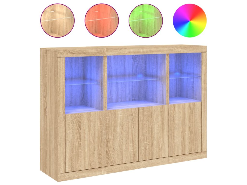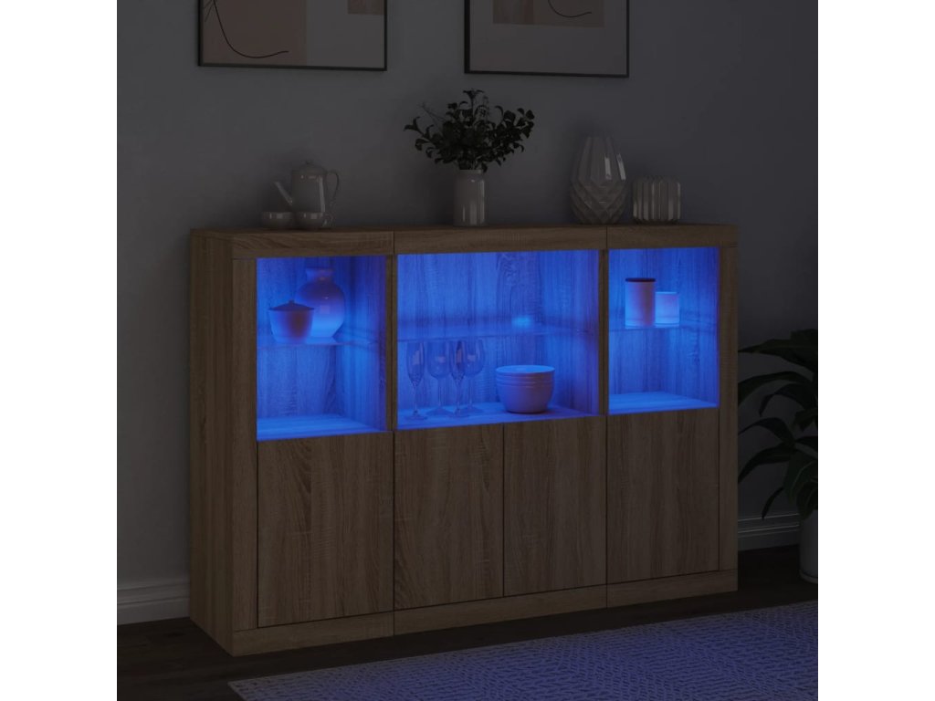Multidom Komody s LED svetlami 3 ks dub sonoma kompozitné drevo