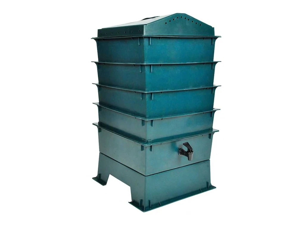 Kompostovanie, ktoré využíva červy, vám umožní premeniť zvyšky potravy a papierový či kartónový odpad na veľmi výživnú pôdu pre vaše rastliny. Vďaka nášmu kompostéru na červy sa celý proces podstatne zrýchli a zjednoduší. Do spodného zásobníku stačí umiestniť niekoľko červov a organický odpad z vašej domácnosti. Červy začnú spracovávať potravu. Keď bude spodný zásobník plný, môžete pridať ďalší zásobník. Červy budú migrovať smerom nahor za najnovším zdrojom potravy a v spodnom zásobníku nechajú kompost, ktorý je bohatý na výživné látky. Počas toho, ako sa odpad rozkladá, prechádza cez celý systém vlhkosť, vďaka čomu môžete získať organické tekuté hnojivo priamo z kohútika.