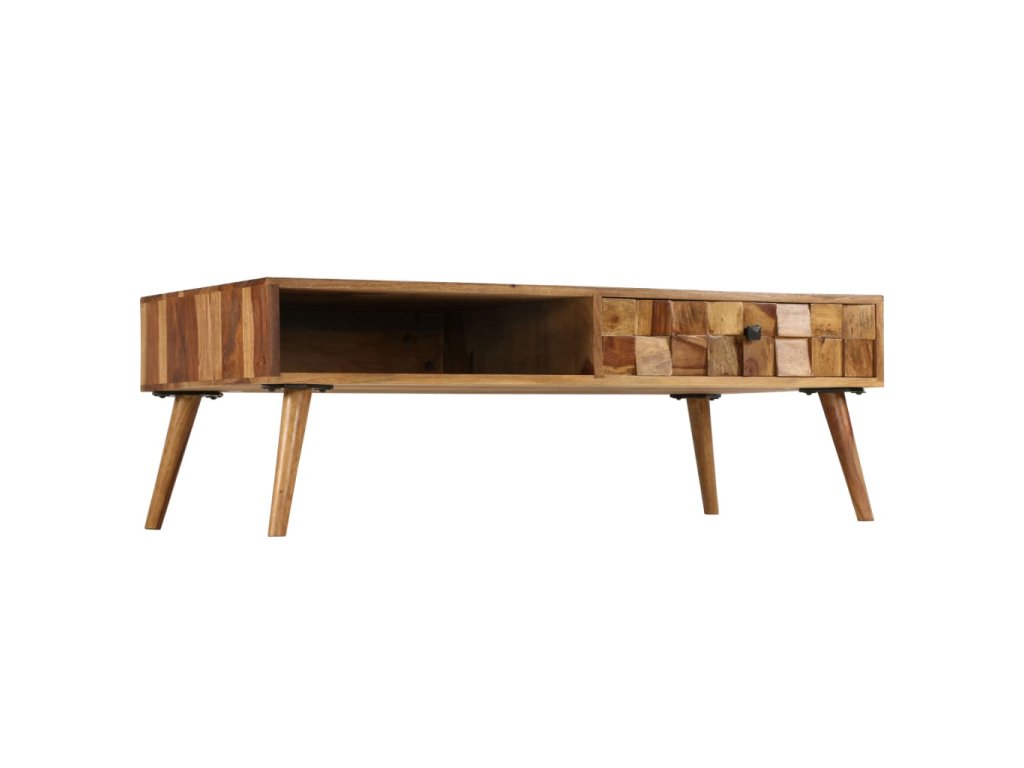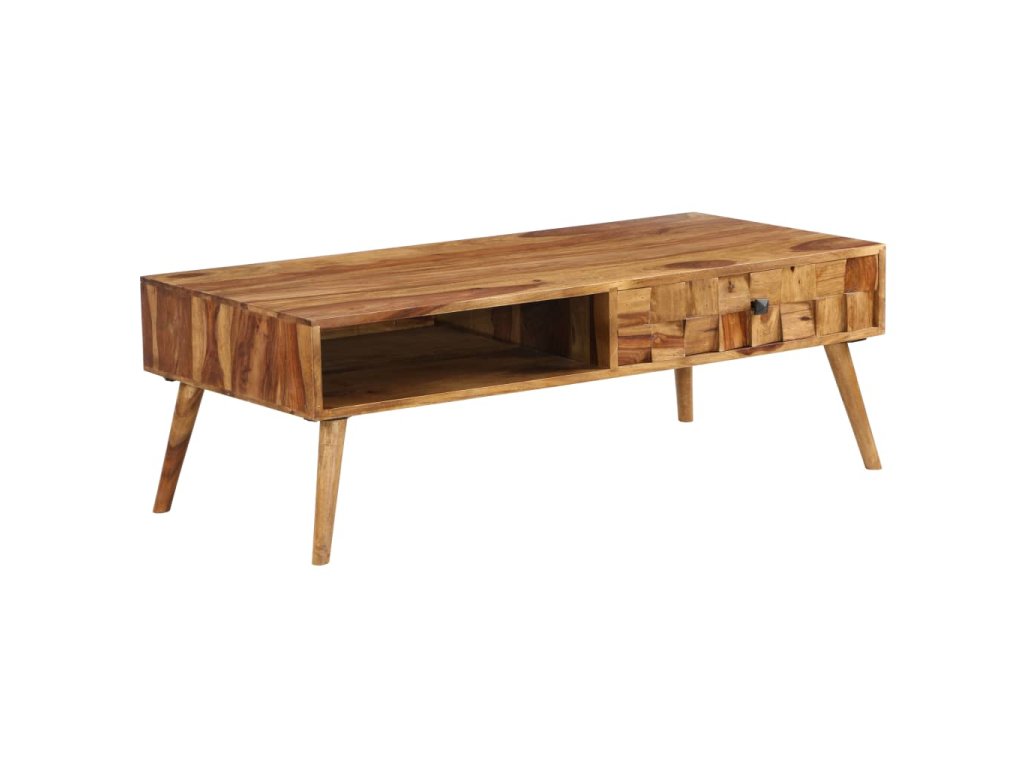 Tento stolík je vyrobený z masívneho akáciového dreva a môže byť použtý aj ako odkladací alebo príručný stolík. Akácia je tropické tvrdé drevo, ktoré je známe svojou bohatou kresbou a je aj známe ako ružové drevo alebo palisander. Každý krok výrobného procesu sa vykonáva s maximálnou starostlivosťou, či už ide o leštenie alebo lakovanie. Vďaka remeselnému spracovaniu a krásnej kresbe dreva je každý kus nábytku jedinečný a trochu odlišným od ostatných kusov. Tento stolík má 1 úložnú priehradku a 1 zásuvku a poskytne dostatok priestoru na uloženie kníh, časopisov alebo iných drobností, ktoré chcete mať uložené na dosah ruky. Drevené nohy mu dodávajú nielen robustnosť, ale vzhľad z polovice minulého storočia. Montáž je jednoduchá.