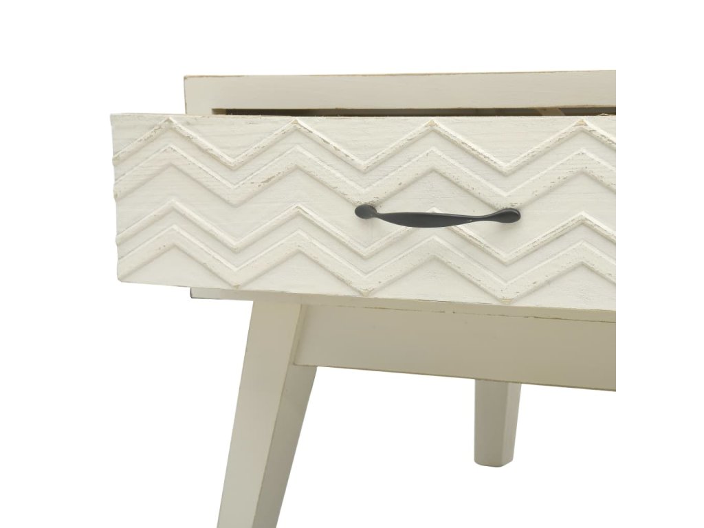 Tento stôl je vyrobený z MDF a borovicového dreva. Je pevný a odolný, vďaka čomu vydrží roky. Dve zásuvky s vyrezávaným dizajnom ponúknu dostatok priestoru na uloženie a usporiadanie vašich kníh, diaľkových ovládačov alebo iných osobných vecí, vďaka čomu budú vaše veci čisté a upratané. Jednoducho sa čistí a udržiava.