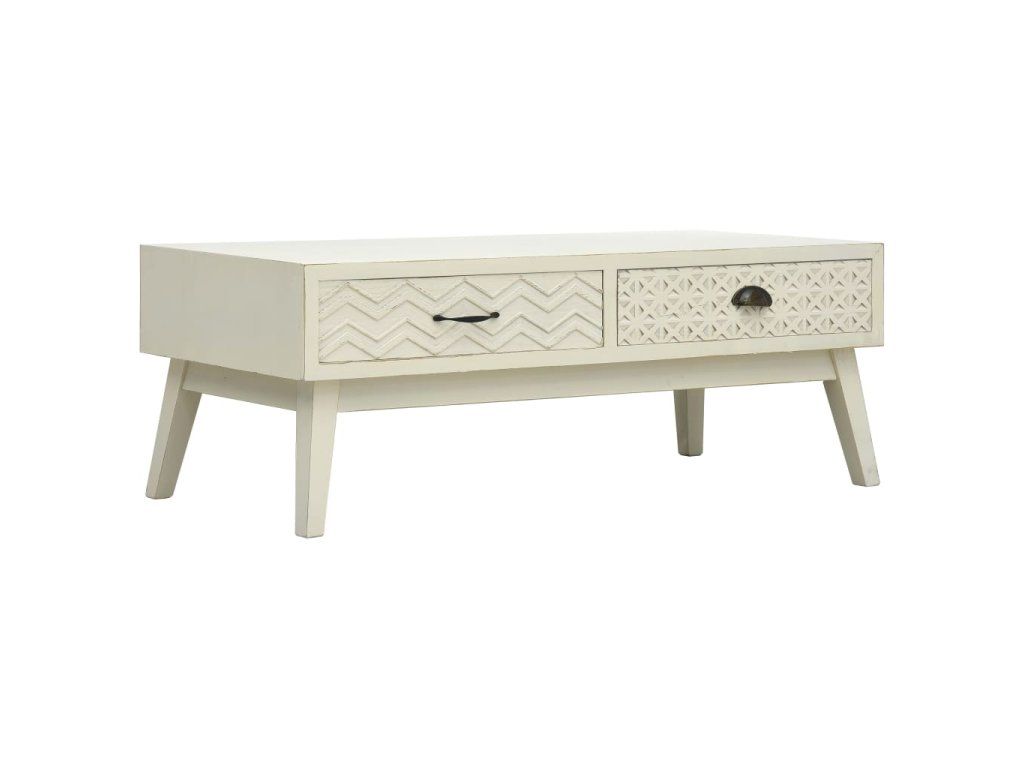 Multidom Konferenčný stolík 2 zásuvky vyrezávaný sivý 110x50x40 cm drevo