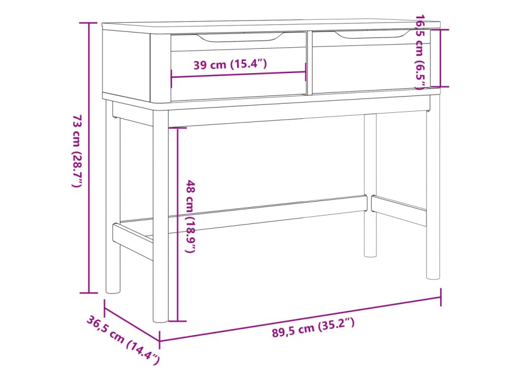 - Dostatok úložného priestoru: Tento praktický stolík do predsiene má 2 zásuvky, ktoré poskytujú dostatok priestoru na uloženie vašich kníh, rastlín, úložných boxov, dekorácií atď.