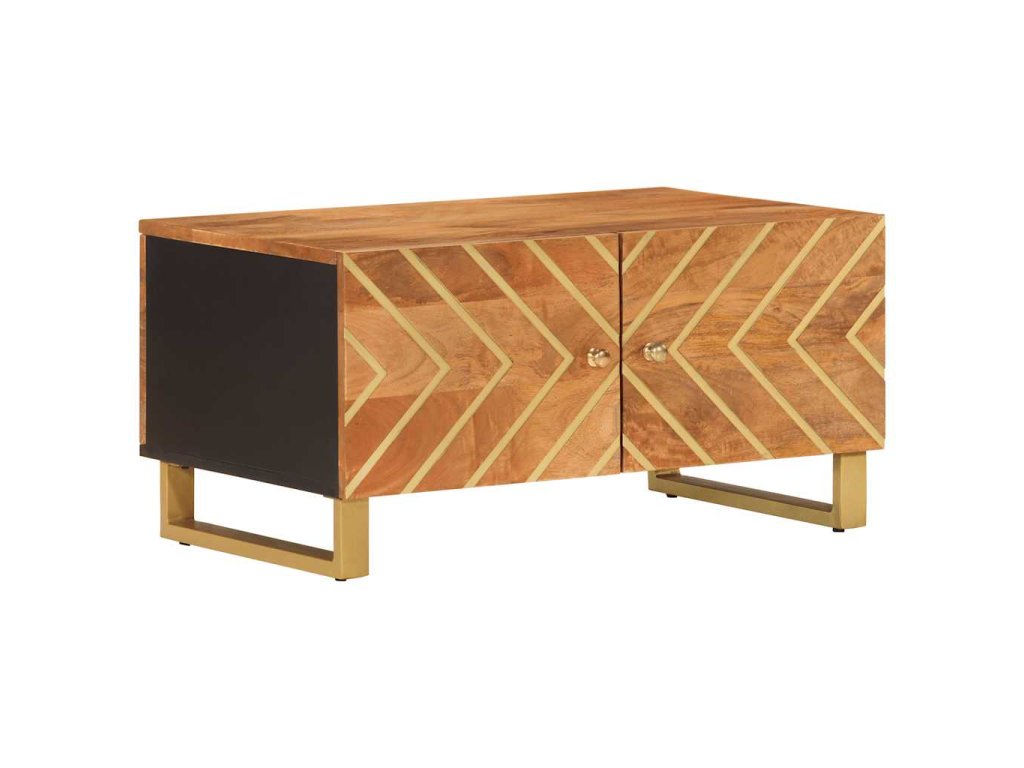 - Materiál: Mangovníkový masív s povrchovou úpravou v akáciovej farbe, MDF, železo