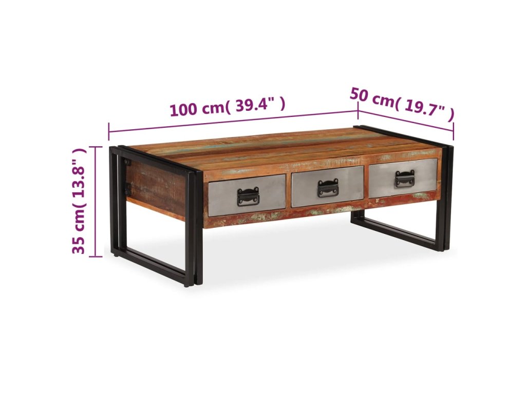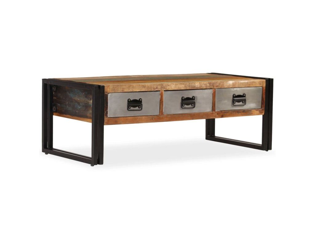 Multidom Konferenčný stolík s 3 zásuvkami, recyklovaný masív 100x50x35cm