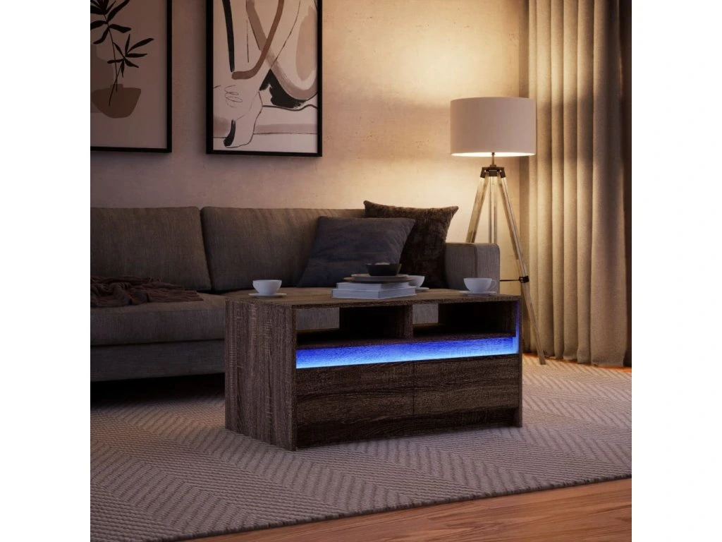- RGB LED svetlá pre príjemnú atmosféru: Tento stolík je vybavený LED svetlami, ktoré sa dajú jednoducho nastaviť a vytvoriť tak individuálnu svetelnú šou. Môžete si prispôsobiť režimy, farby a jas, aby ste zlepšili atmosféru svojho interiéru.