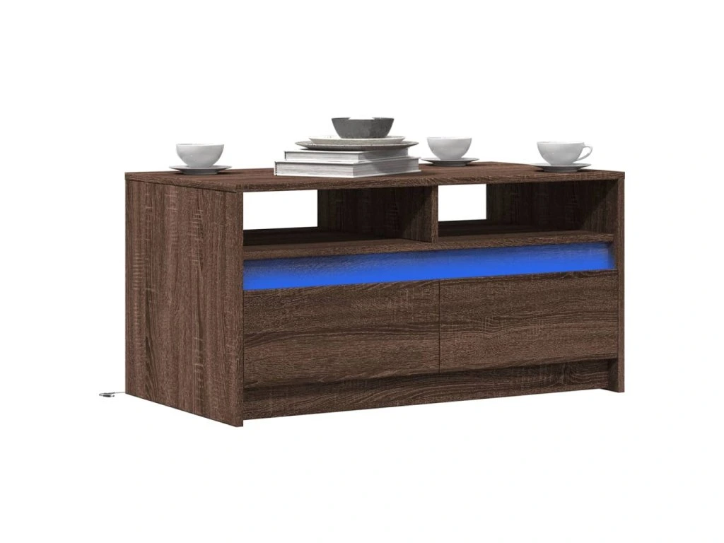 Multidom Konferenčný stolík s LED, hnedý dub, kompozitné drevo