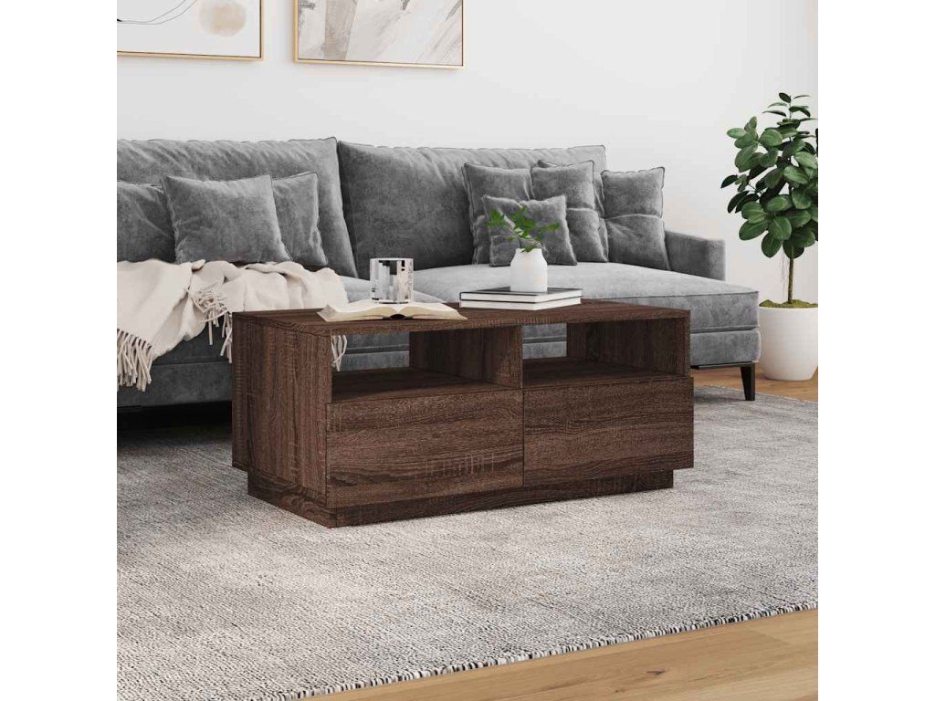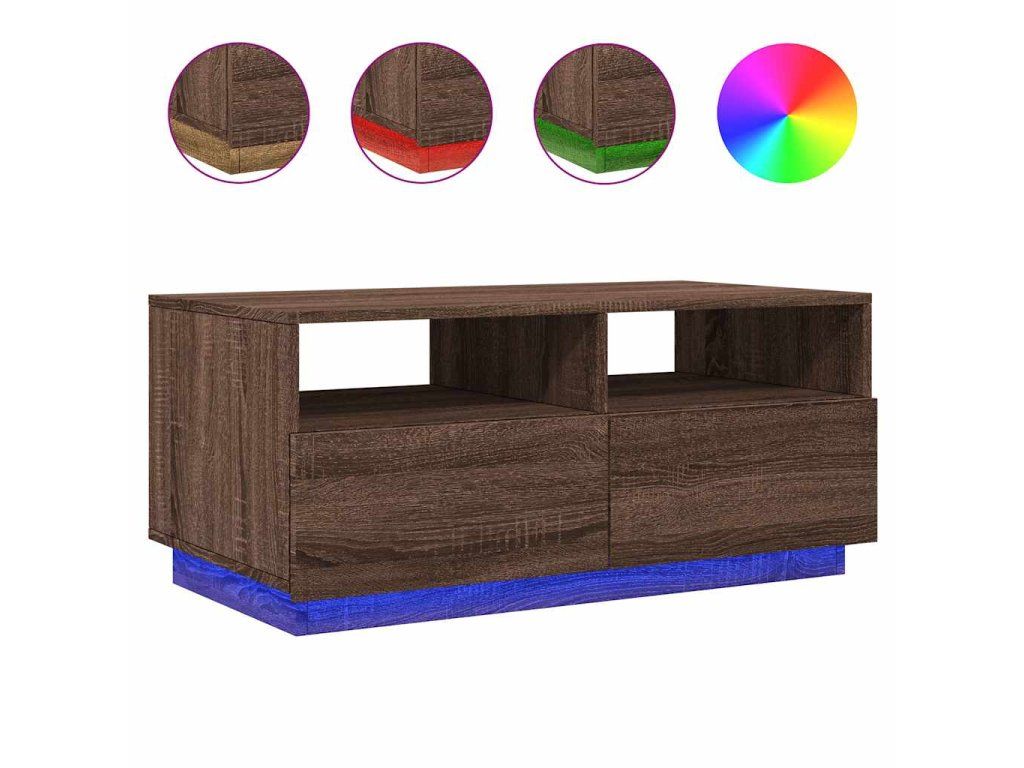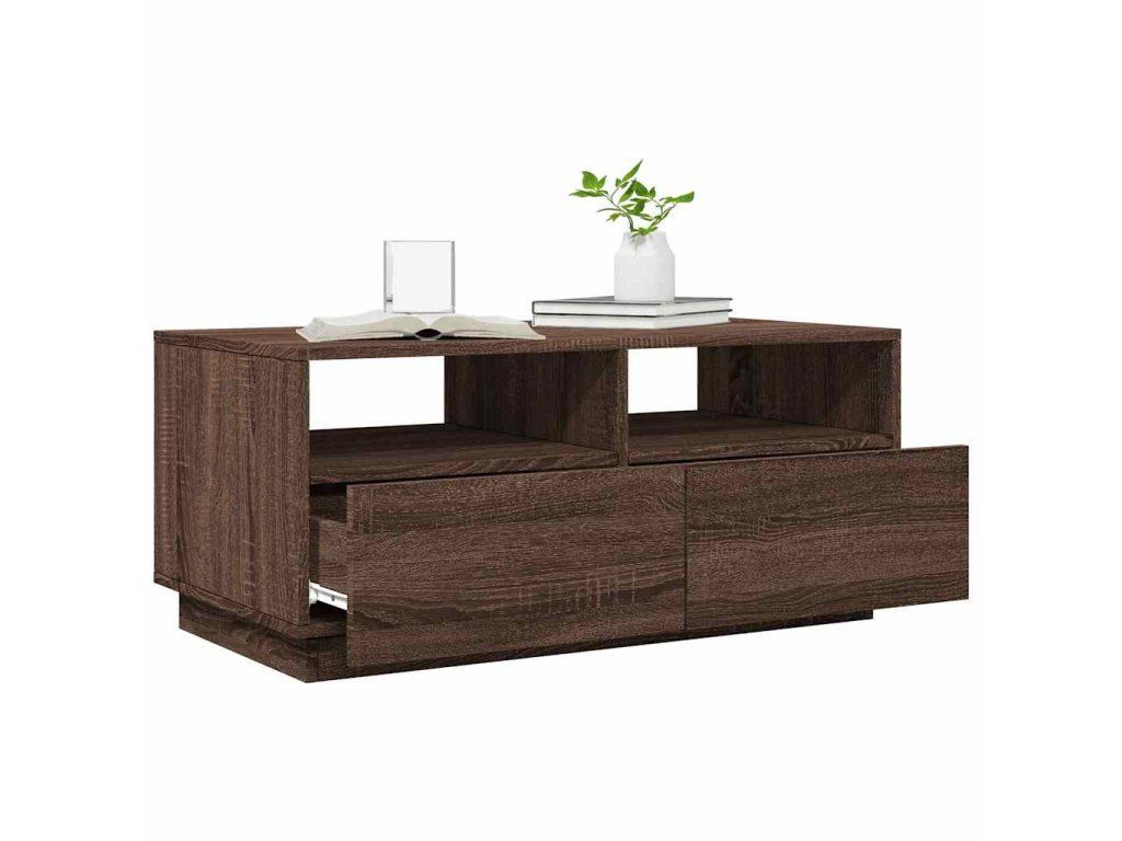 Multidom Konferenčný stolík s LED svetlami, hnedý dub 90x49x40 cm