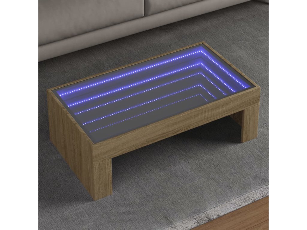 Multidom Konferenčný stolík s nekonečnými LED dub sonoma 90x50x30 cm