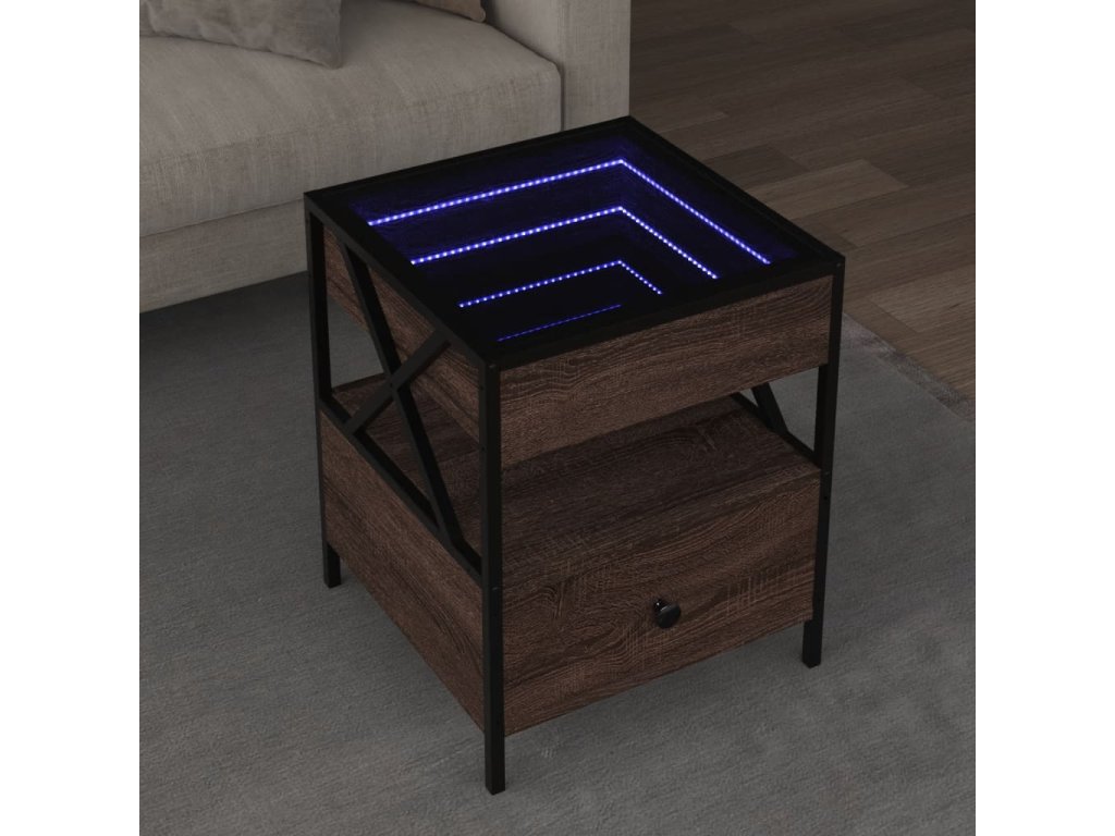 Multidom Konferenčný stolík s nekonečnými LED hnedý dub 40x40x51 cm