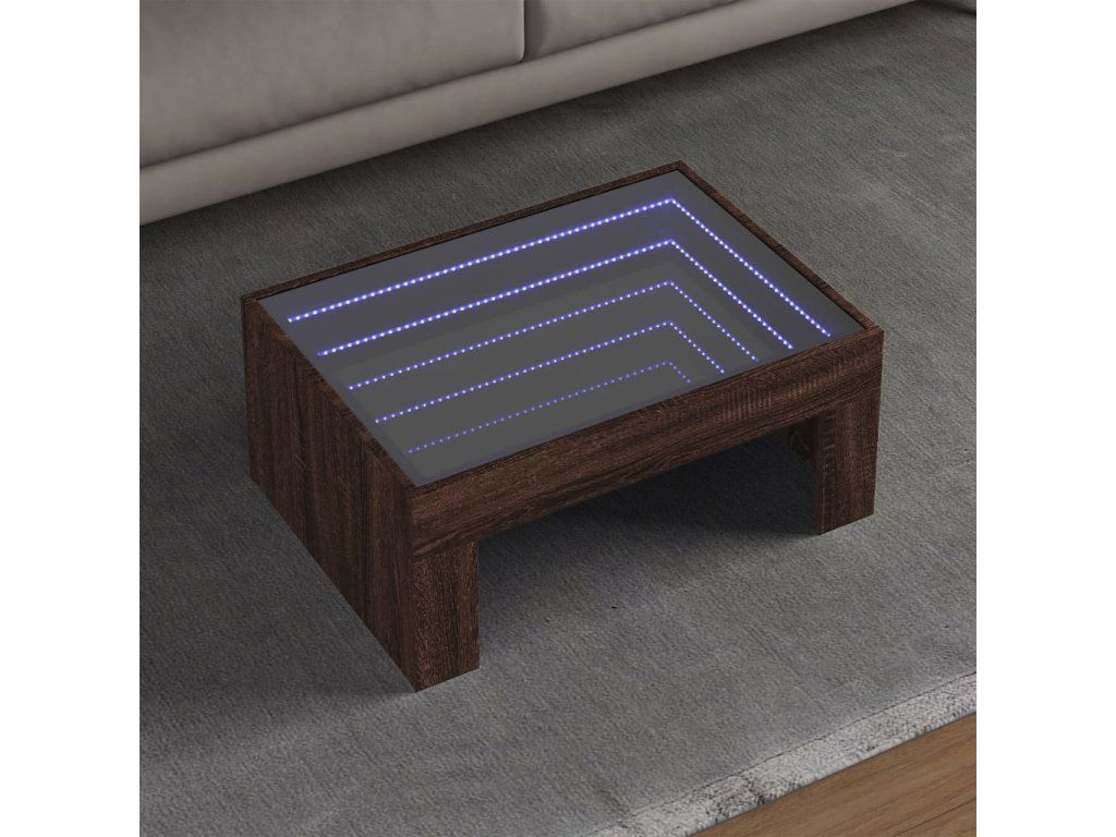 Multidom Konferenčný stolík s nekonečnými LED hnedý dub 70x50x30 cm