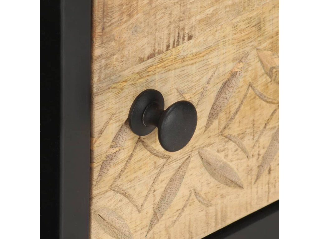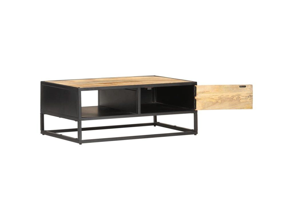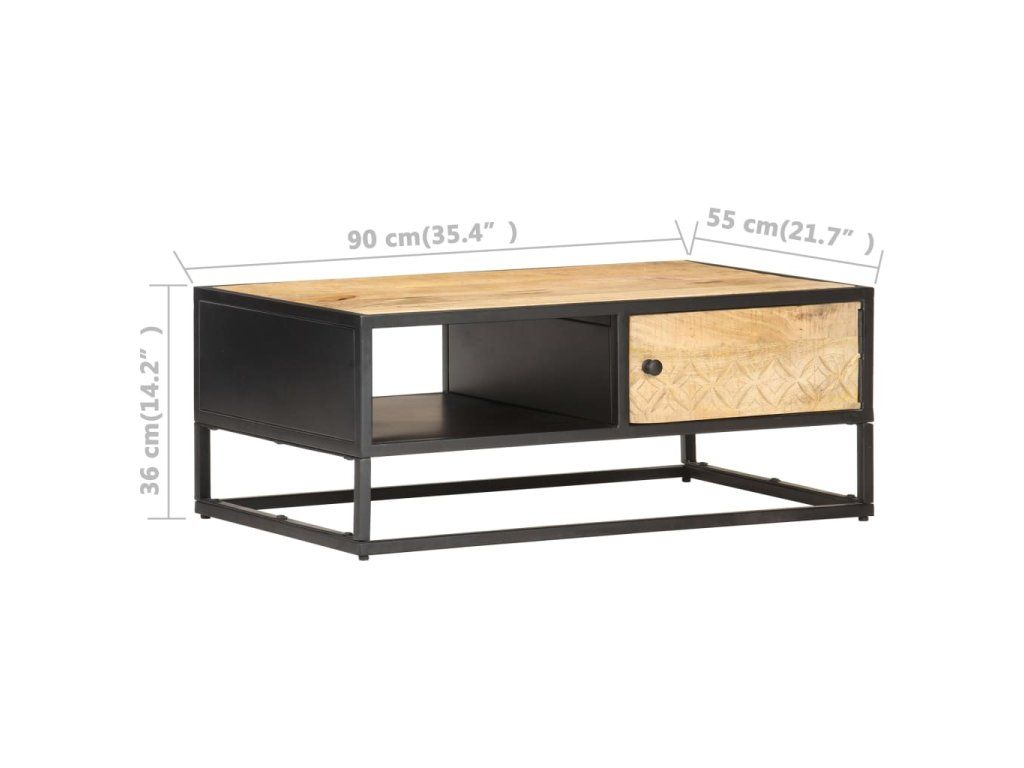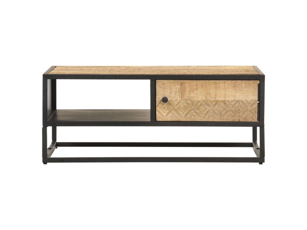 Tento konferenčný stolík je ručne vyrobený zo surového mangovníkového dreva, ktoré je pevné, stabilné, odolné a krásne. Remeselné spracovanie mu dodáva úžasný retro štýl. Každý krok výrobného procesu je robený s tou najväčšou starostlivosťou, či už sa jedná o leštenie, lakovanie a natieranie. Železný rám s práškovým nástrekom zvyšuje jeho robustnosť. Jedny dvierka s vyrezávaným vzorom a jedna otvorená priehradka poskytujú dostatok priestoru na uloženie a usporiadanie vašich kníh, diaľkových ovládačov alebo iných osobných vecí, vďaka čomu budú vaše veci upratané.