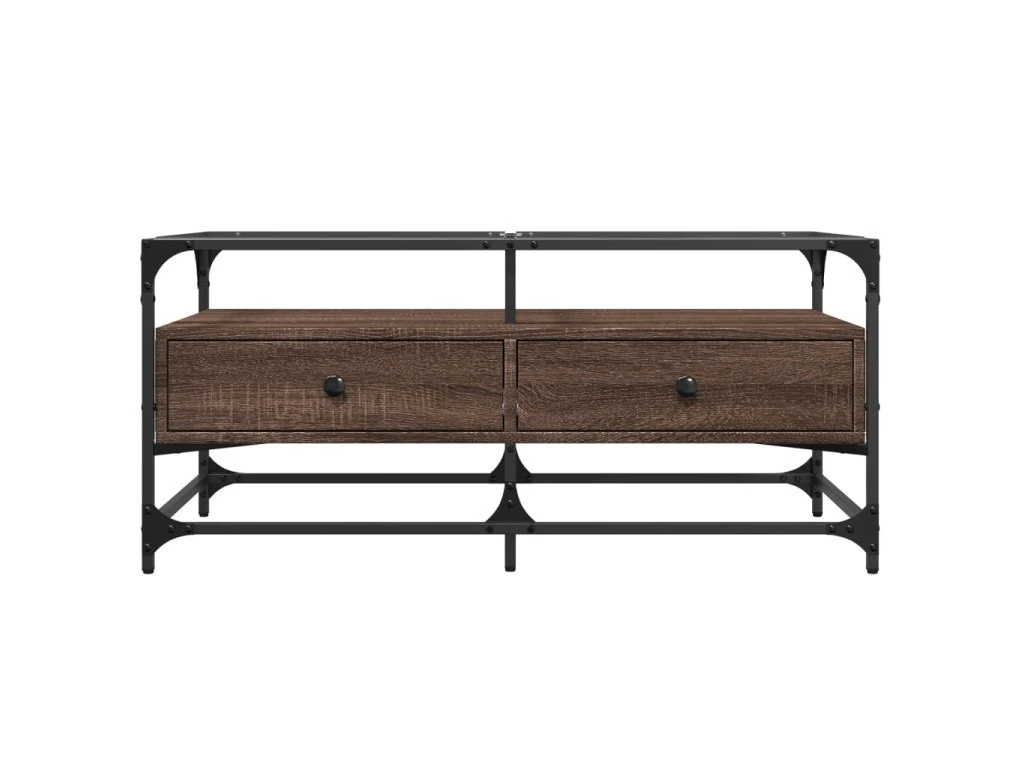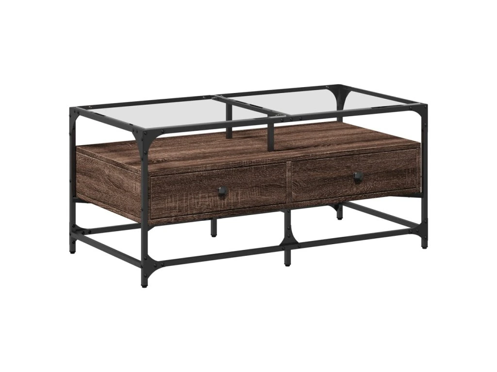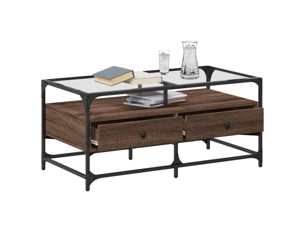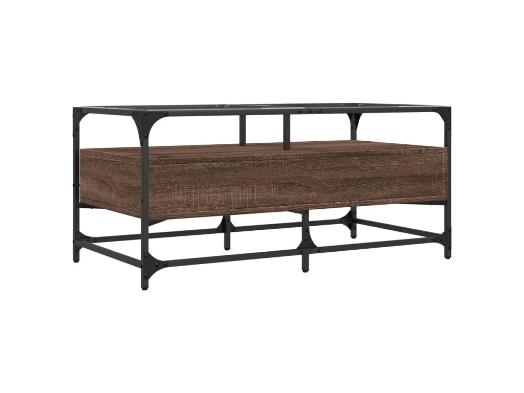 Multidom Konferenčný stolík sklenená doska hnedý dub 98,5x50x45 cm oceľ