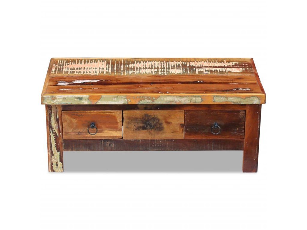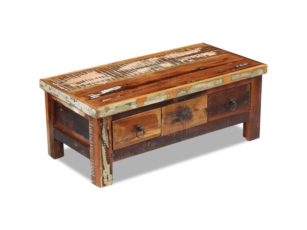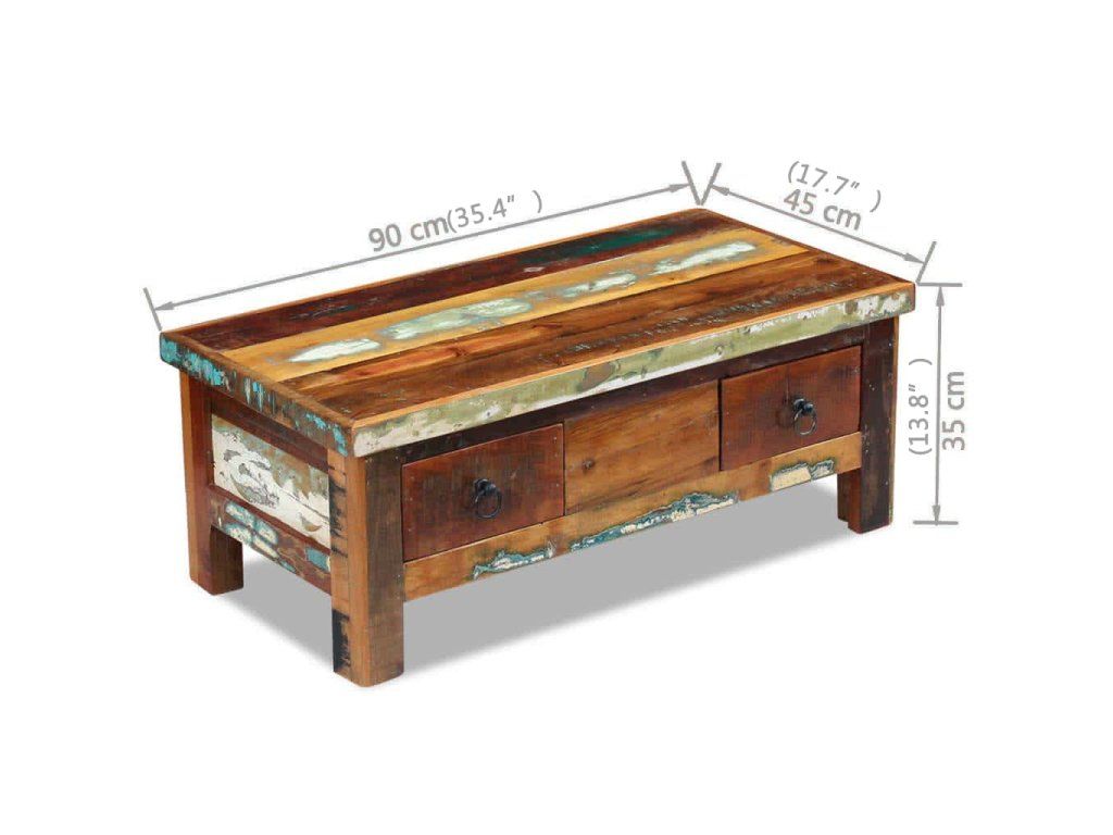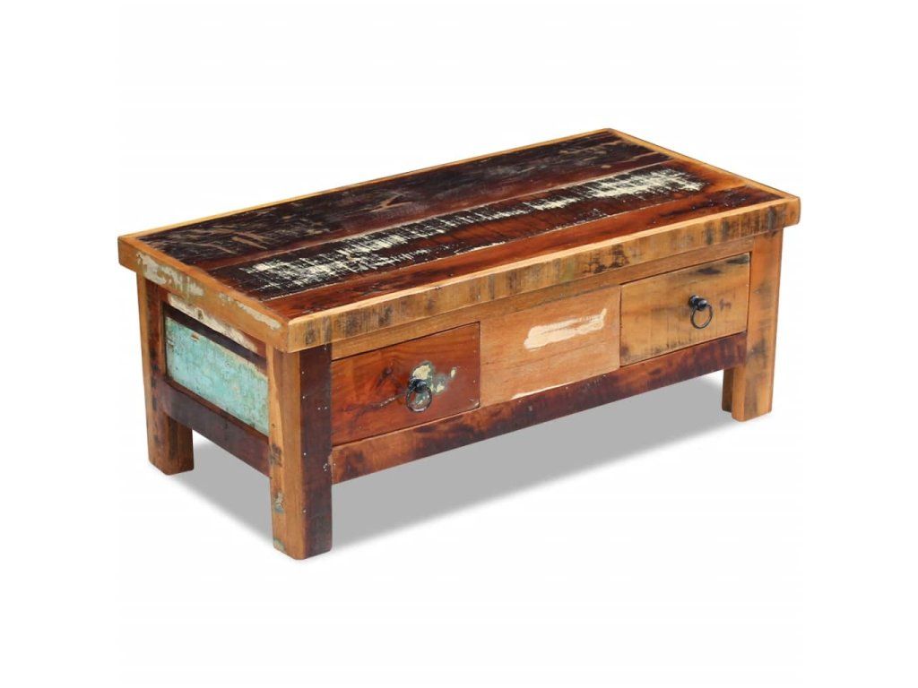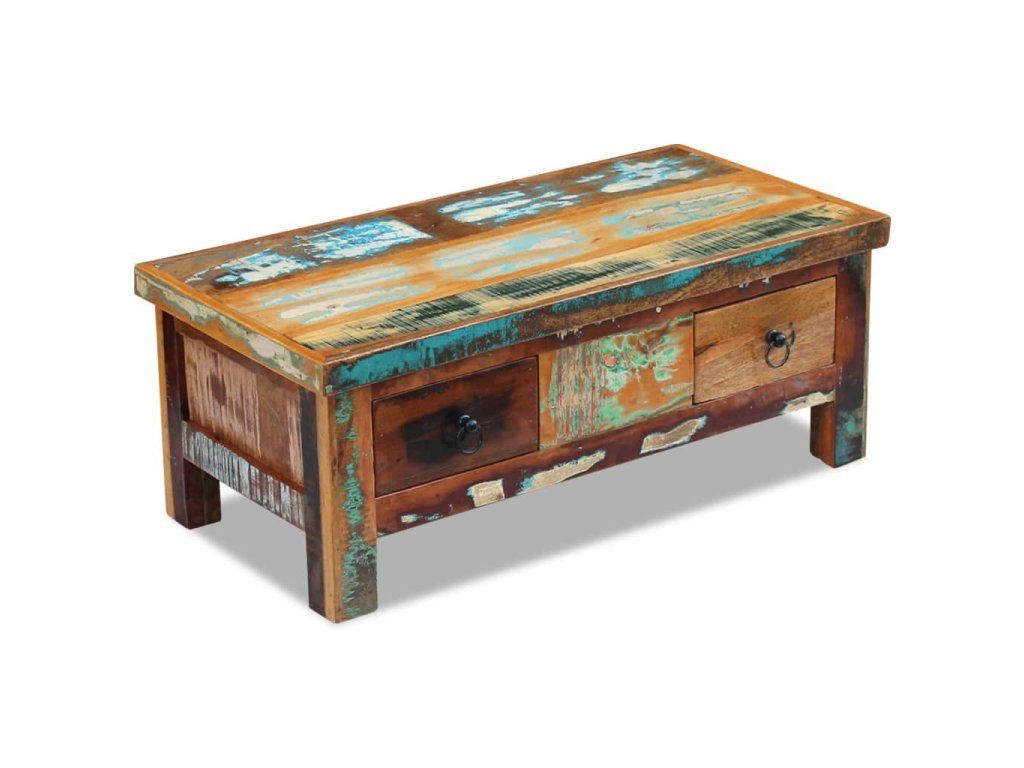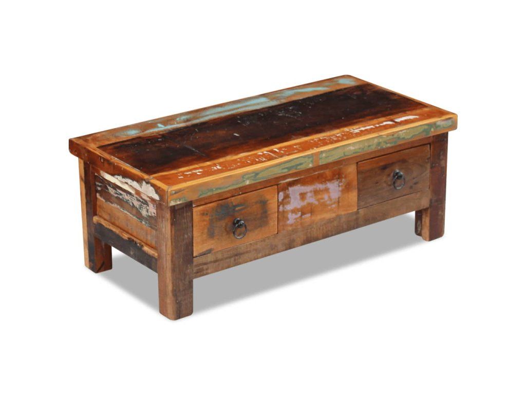 Stolík so zásuvkami je vyrobený z recyklovaného masívu, ktorý je pevný, trvácny a krásny a má podobné vlastnosti ako napríklad tíkové, mangové, akáciové, recyklované, tvrdé drevo a podobne. Každý kus nábytku je jedinečný a trochu odlišný od ostatných. Známky opotrebovania a viditeľná textúra dreva odrážajú históriu jednotlivých kúskov nábytku a dodávajú im jedinečný vzhľad.