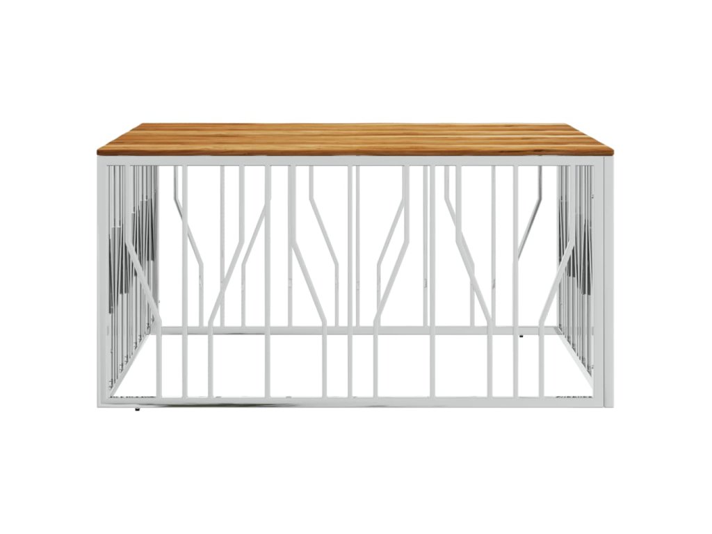 Multidom Konferenčný stolík strieborný nehrdzavej. oceľ a masívna akácia
