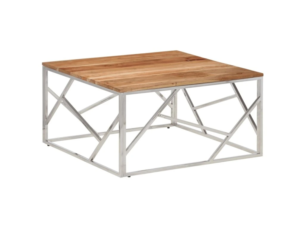 Multidom Konferenčný stolík strieborný nehrdzavejúca oceľ a masív.akácia