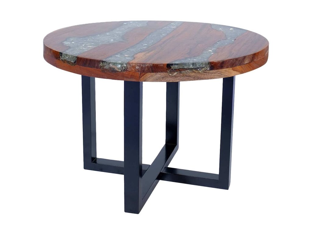 Tento úžasný konferenčný stolík, vyrobený z masívneho teakového dreva a priehľadnej živice, vyžaruje vidiecky šarm a je naozaj pútavým kusom nábytku. Jeho okrúhla doska poskytuje stabilný a bezpečný povrch, na ktorom môžete umiestniť nápoje, vázy, ovocné misky alebo ozdoby. Konferenčný stolík môže byť tiež použitý aj ako bočný stôl.