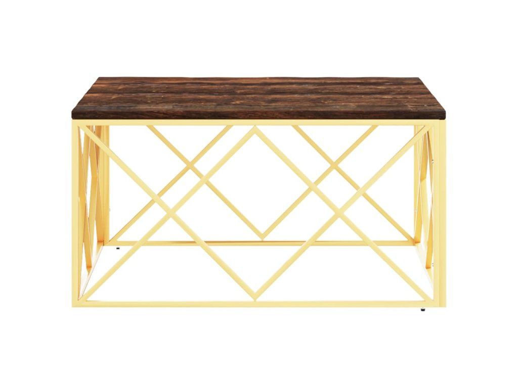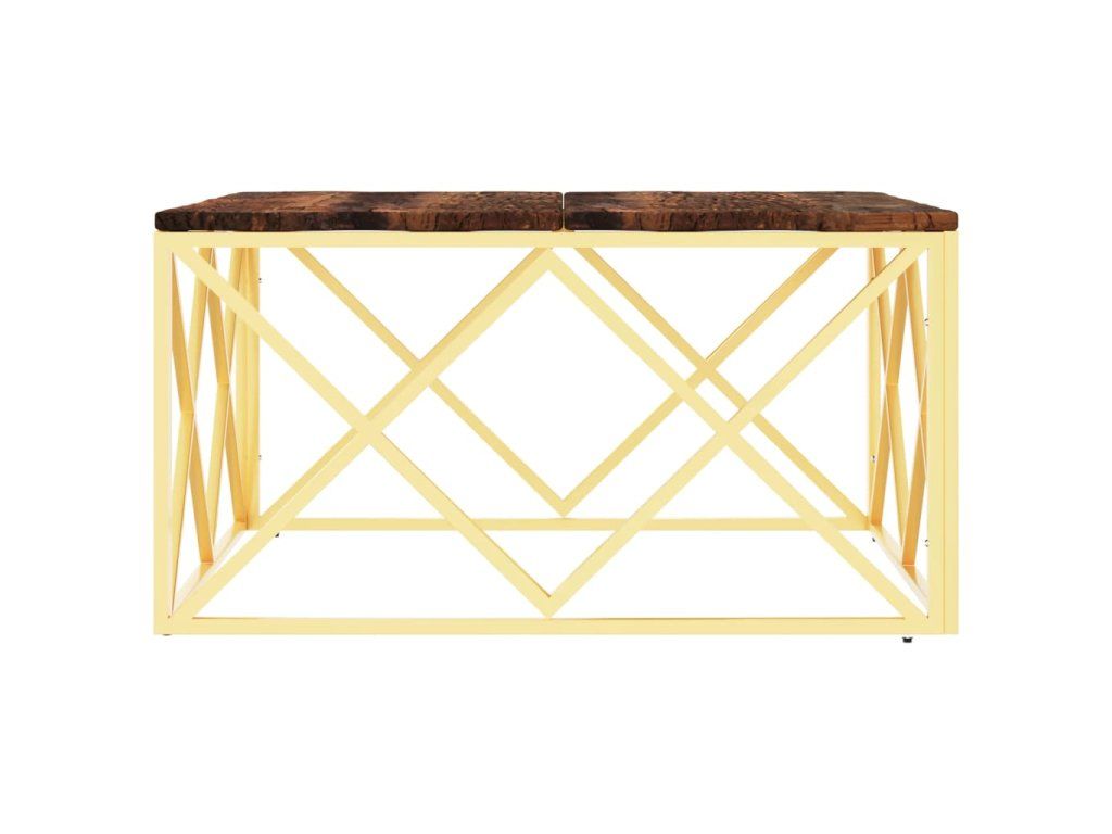Multidom Konferenčný stolík zlatý nehrdzavejúca oceľ a recyk. masív