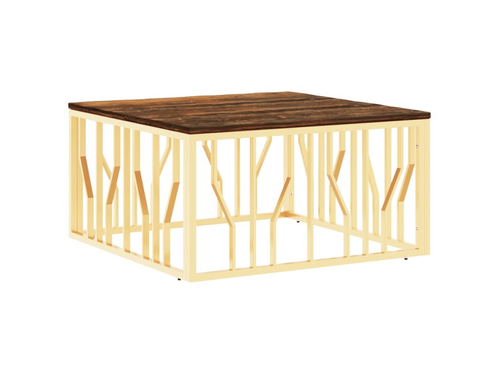 Multidom Konferenčný stolík zlatý nehrdzavejúca oceľ a recyk. masív