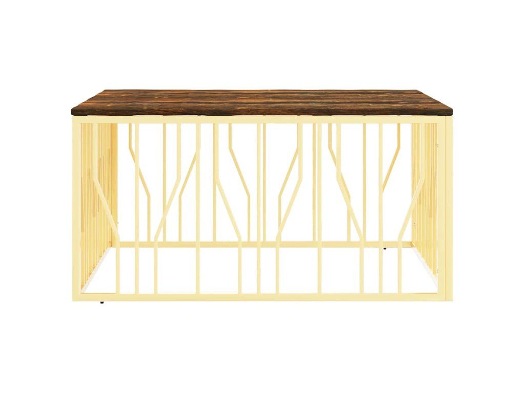 Multidom Konferenčný stolík zlatý nehrdzavejúca oceľ a recyk. masív