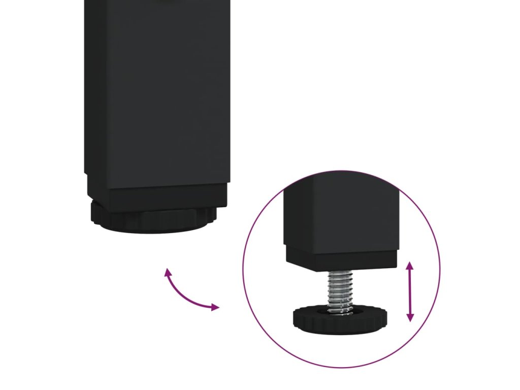 - Nastaviteľné nohy: Šesť nastaviteľných nôh s plastovými podložkami udržiava stolík do chodby vyvážený na nerovnom povrchu a zvyšuje stabilitu.