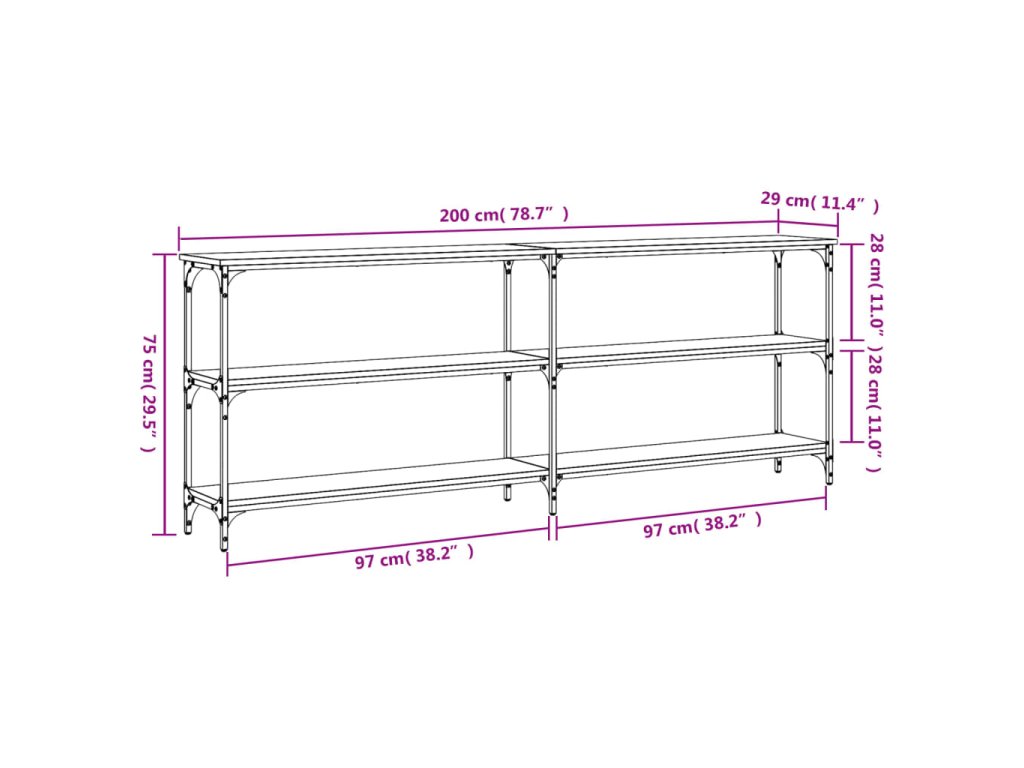 Multidom Konzolový stolík, dub sonoma, 200x29x75 cm, imitácia dreva