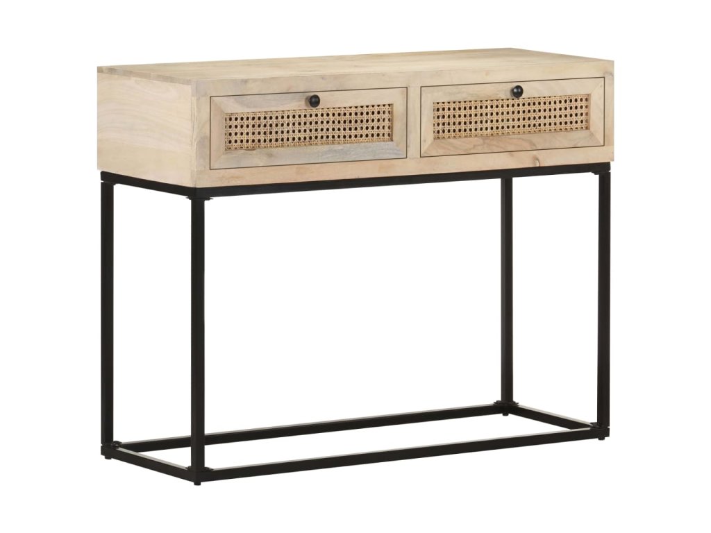 Multidom Konzolový stolík 100x35x76 cm mangovníkový masív a prírodná trstina