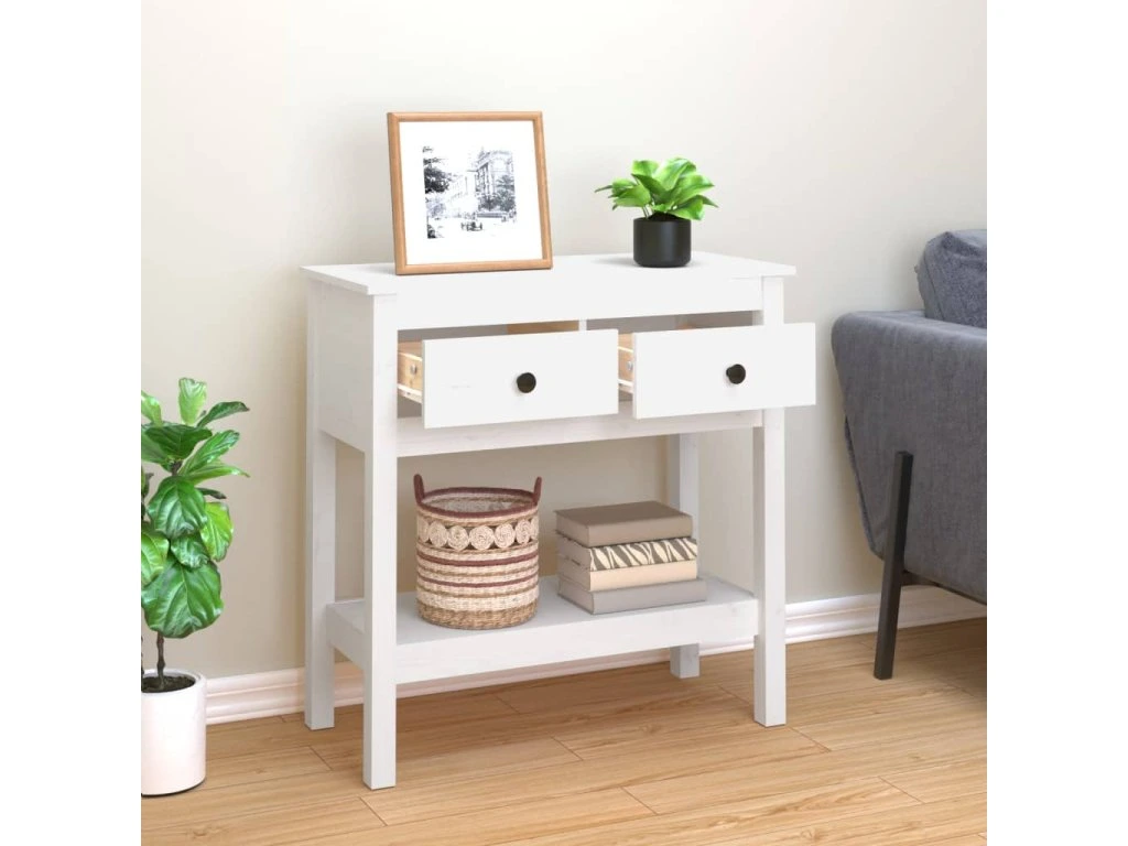 Multidom Konzolový stolík biely 75x35x75 cm masívne borovicové drevo