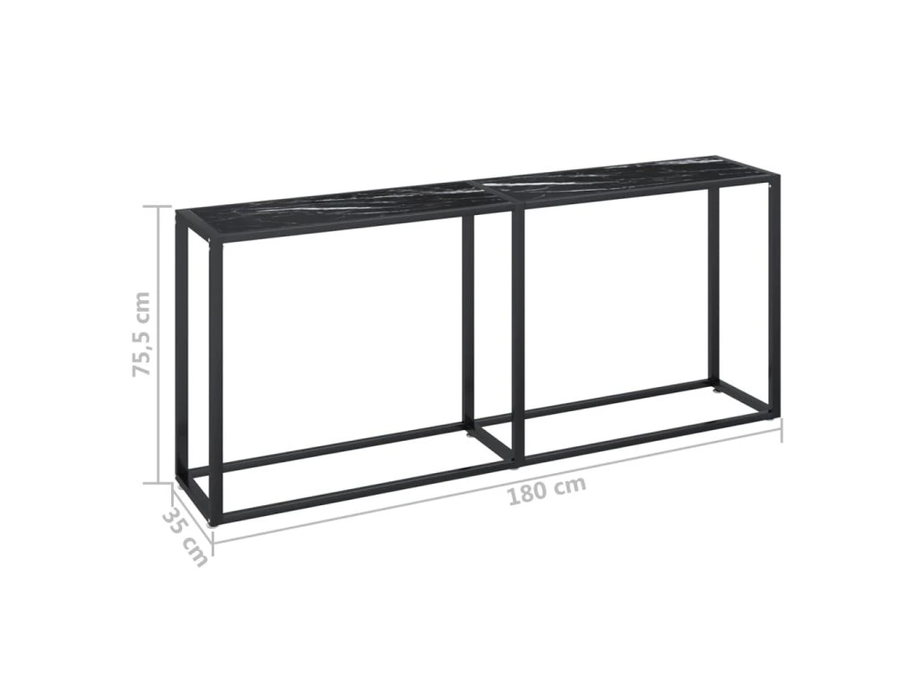 Multidom Konzolový stolík čierny mramor 180x35x75,5 cm tvrdené sklo