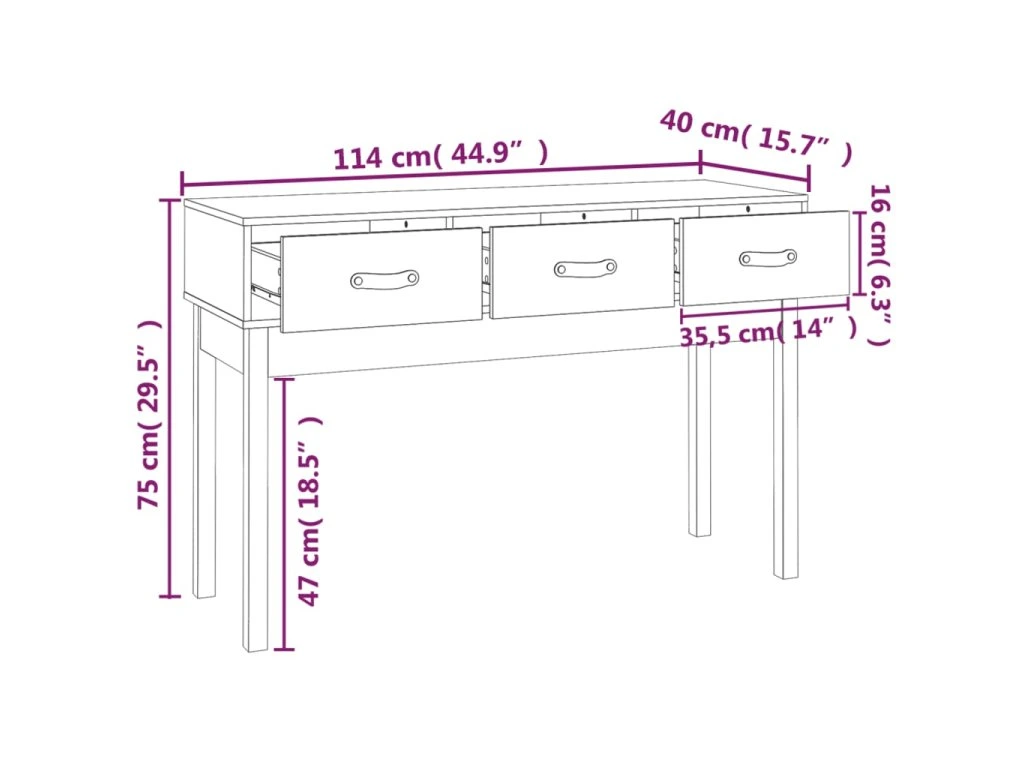 - Dostatok úložného priestoru: Halový stolík má 3 zásuvky, ktoré poskytnú dostatok úložného priestoru na uloženie rôznych potrieb dobre organizovaných a na dosah ruky.