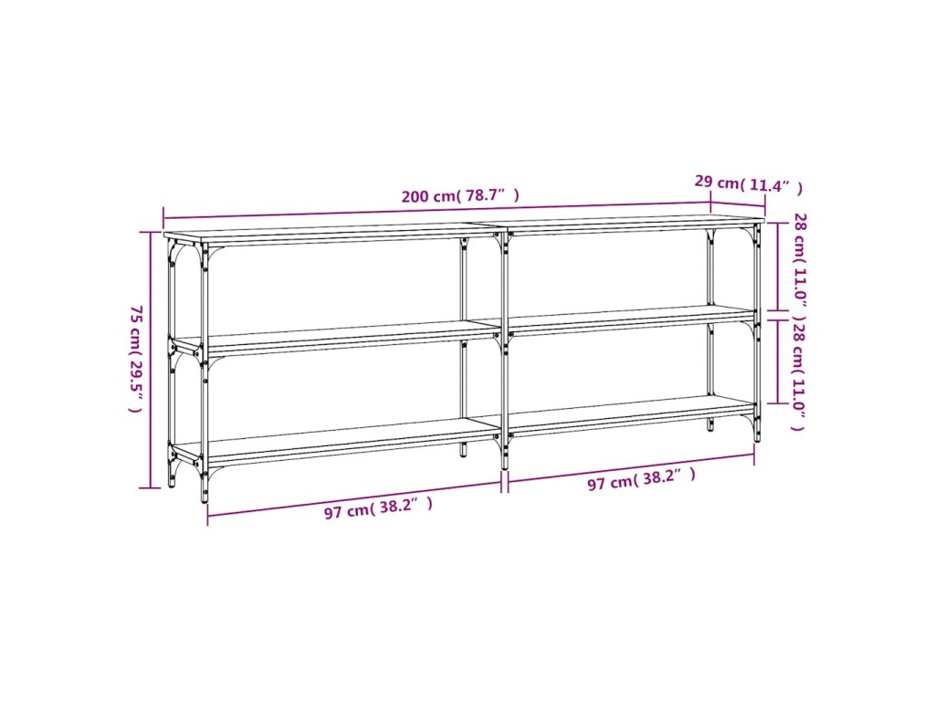 Multidom Konzolový stolík sivý sonoma 200x29x75 cm kompozitné drevo