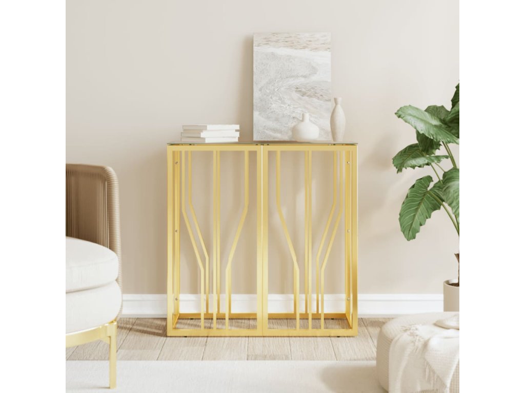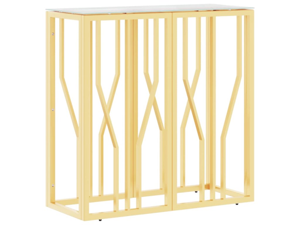 Multidom Konzolový stolík zlatý 70x30x70 cm nehrdzavejúca oceľ a sklo