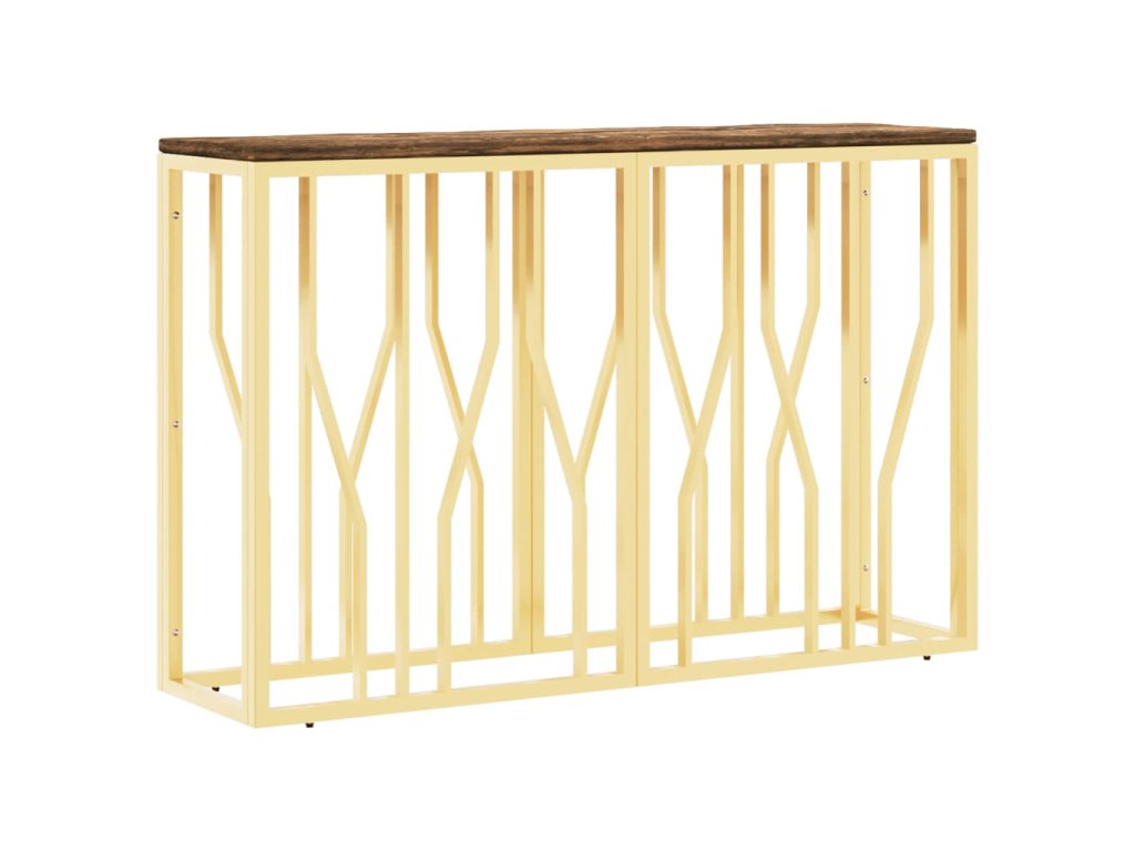 Multidom Konzolový stolík zlatý nehrdzavejúca oceľ a recyk. masív